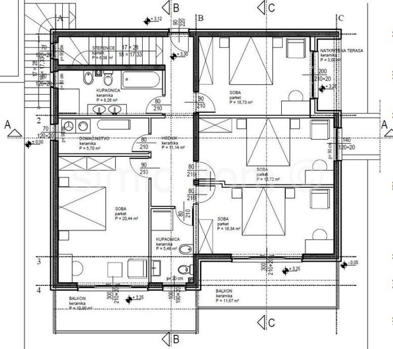 • Outdoor area: The south-facing terrace provides a perfect spot for relaxation by the pool, while the north-facing terrace offers comfortable shade and privacy, ideal for evening gatherings with a barbecue. There is also the possibility of adding additional features such as a rooftop jacuzzi, a covered terrace, or a bar, turning this villa into a true luxury retreat.