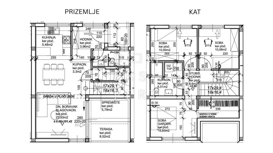 - dnevni boravak s blagovaonicom (23.93 m²)