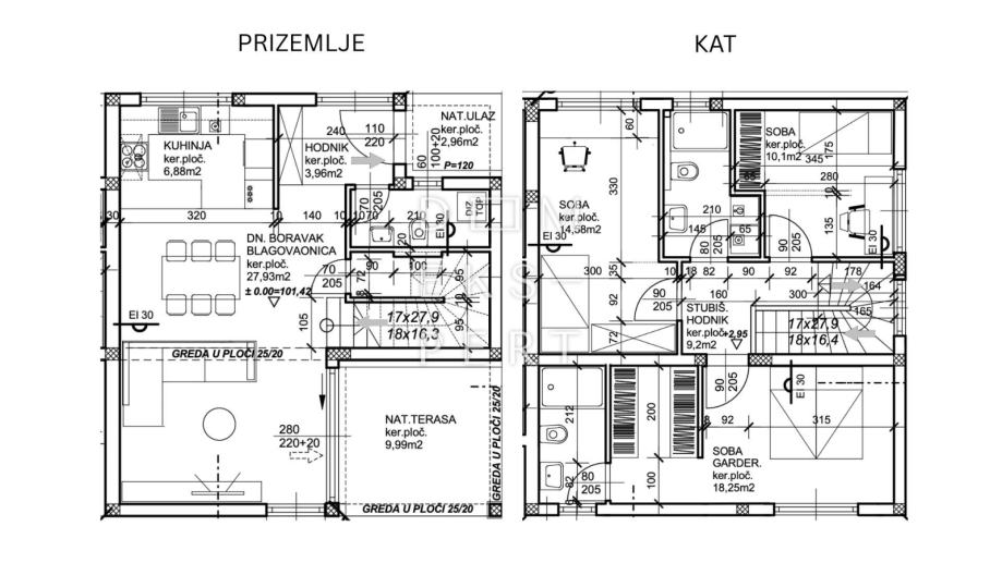 - dnevni boravak s blagovaonicom (27.93 m²)