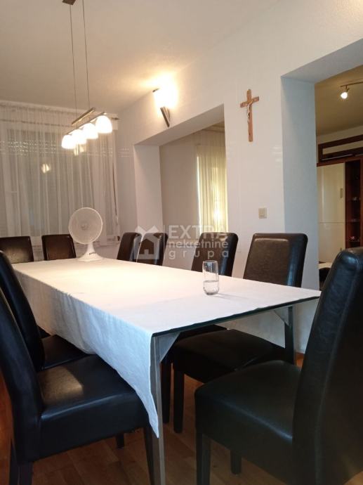 U prizemlju kuće nalazi se četvorosoban stan koji se sastoji od ulaznog prostora/hodnika, kuhinje i blagovaonice sa izlazom na terasu te dnevnog boravka, tri spavaće sobe, kupaonice i WC-a.