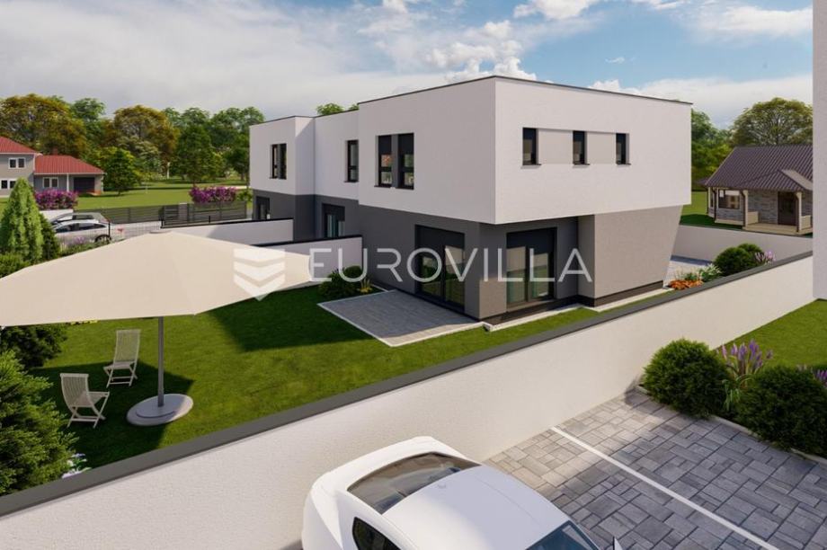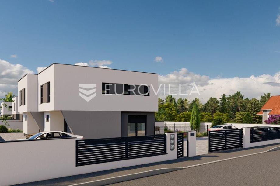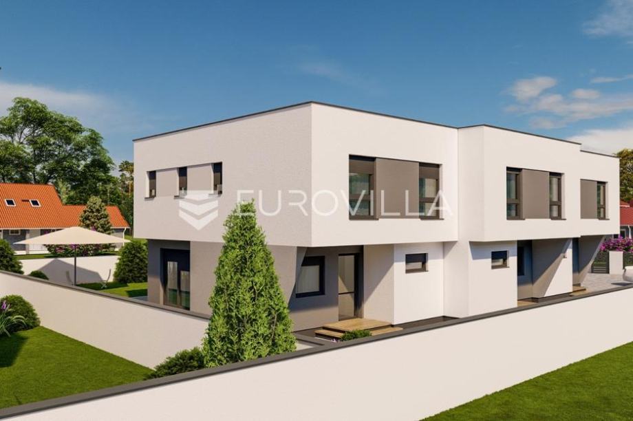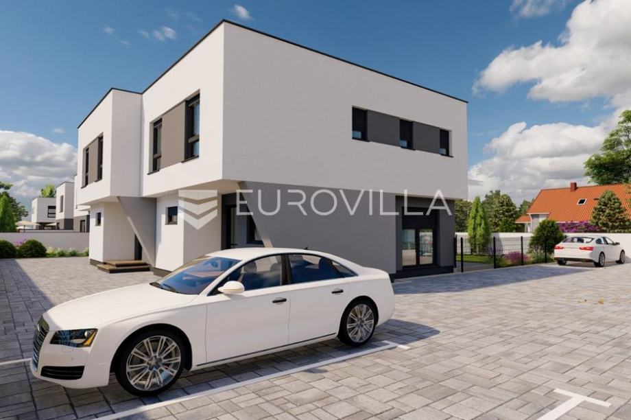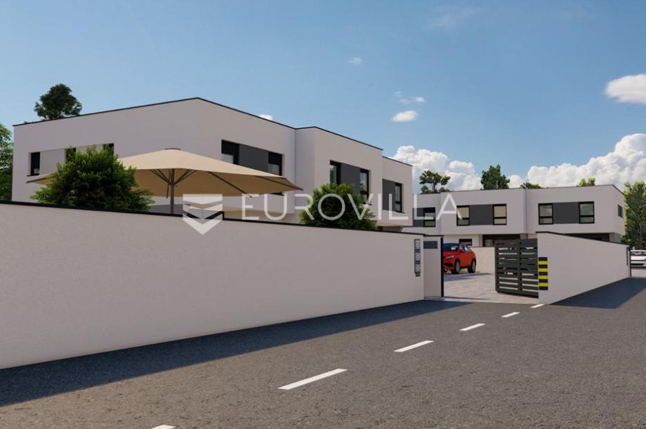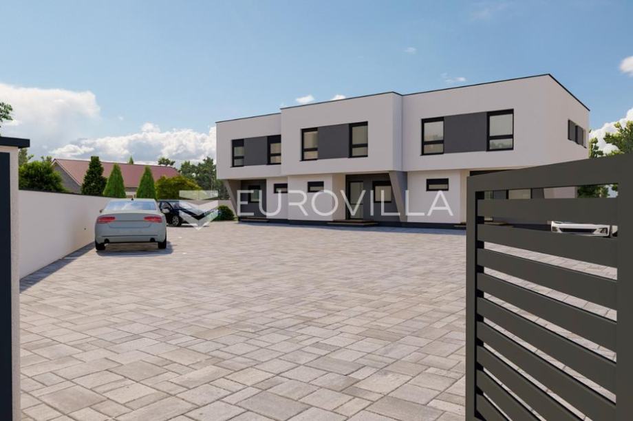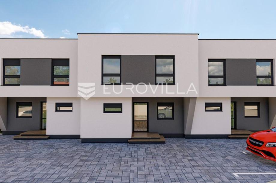 Dugo Selo, elegantno dizajnirana duplex kuća ukupne NKP 119,77 m2.U prizemlju se nalazi natkriveni ulaz (1,53 m2), predprostor (7,30 m2), ostava (4,08 m2), spremište (1,82 m2), kupaonica (2,76 m2) kuhinja (8,43 m2), prostrani dnevni boravak s blagovaonicom (25,40 m2) i terasa 9,85 m2 (2,46 m2)...