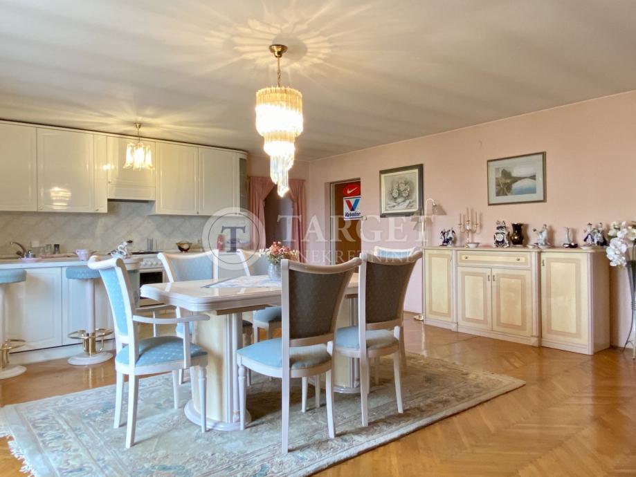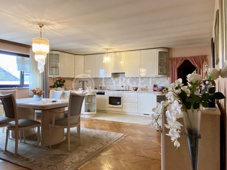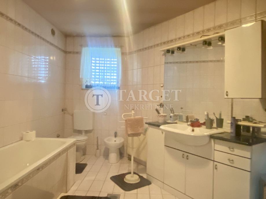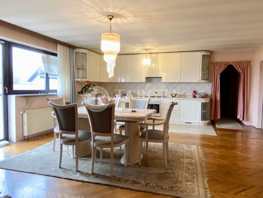 Na katu kuće nalazi se prostrani dnevni boravak povezan sa kuhinjom i blagovaonskim dijelom i izlazom na terasu, četiri sobe od kojih je jedna sa izlazom na lođu te kupaonica.