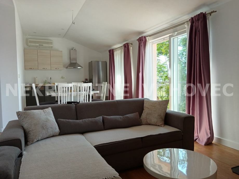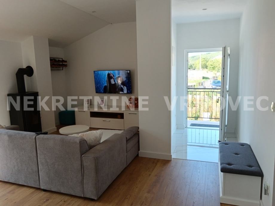 Iznajmljuje se novouređeni stan na prvom katu kuće. Sastoji se od ulaznog hodnika ostave, dvije spavaće sobe, kupaone, kuhinje sa dnevnim boravkom i balkona. Ispred kuće je roštilj na korištenje i konoba po dogovoru.