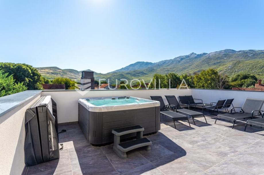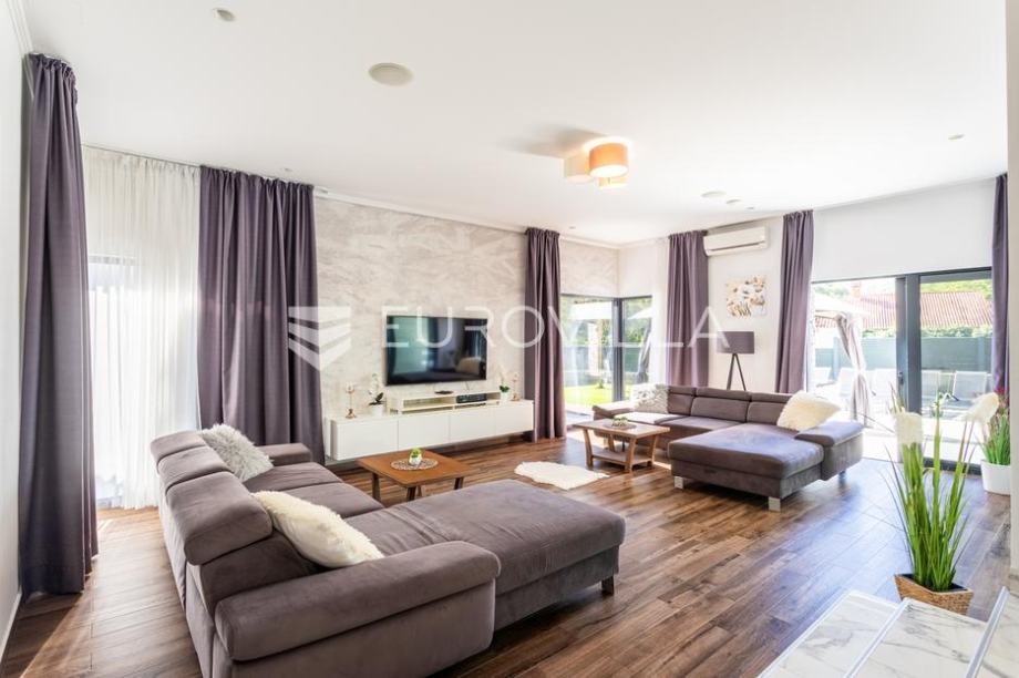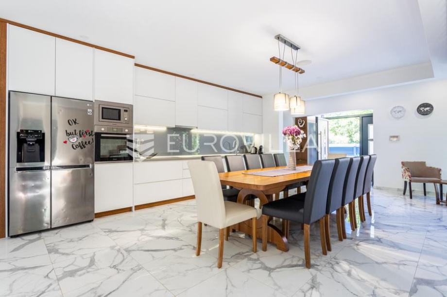 Dugopolje, a spacious and modernly decorated villa of 350 m², located on a large plot of 1514 m², offers the ultimate in comfort and luxury. Available for long-term rental from October 2025.The villa consists of a fully equipped kitchen with modern appliances, a spacious and elegant living room...