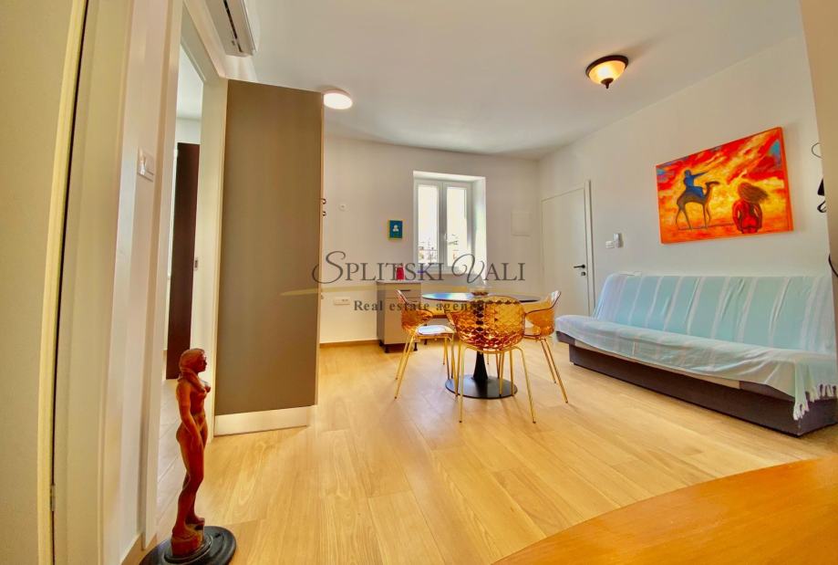 Iznajmljuje se namješten stan površine 35 m², smješten na 1. katu, u centru Trogira. Stan se sastoji od kuhinje, kupaonice i zasebne sobe te je pogodan za jednu osobu ili par.