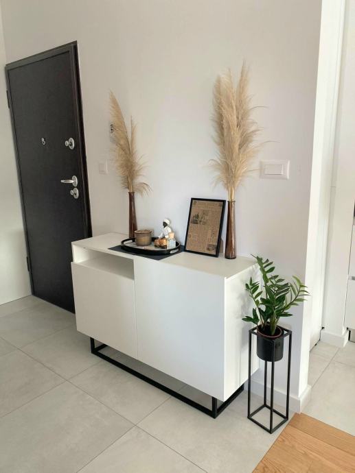Stan se sastoji od kuhinje i dnevog boravka, dvije sobe, kupaonica sa podnim grijanjem, balkona i male ostave u stanu u kojoj se nalazi perilica/sušilica. Svaka soba i dnevni boravak imaju zaseban klima uredaj. Orijentacija stana je jugo-zapad.