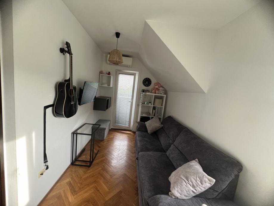 Dugoročno iznajmljujemo stan u Gajnicama (ulica Karažnik) od 39 kvadrata. Stan je potpuno namješten, a većina je namještaja nova. Pun je svjetlosti (orijentacija jug - zapad) i sastoji se od hodnika, dnevnog boravka s kuhinjom i blagovaonicom, spavaće soba, kupaonice i balkona. Imate parkirno mjesto. Stan se nalazi na 2. katu zgrade i s balkona ima prekrasan pogled na zelenilo i susjedstvo. U blizini nekoliko min hoda su autobusna stanica, Konzum, Lidl, Muller, škola... Vlak udaljen 10ak min hoda (glavni kolodvor 12 min vožnje). Ukoliko radite na Jankomiru na idealnoj ste lokaciji. Tehnička oprema u stanu: - portafon i video - perilica posuđa - perilica rublja - pećnica - frižider - klima - televizor - mogućnost interneta. Stan se može razgledati po dogovoru, a kod najma se potpisuje ugovor o najmu na minimalno godinu dana.