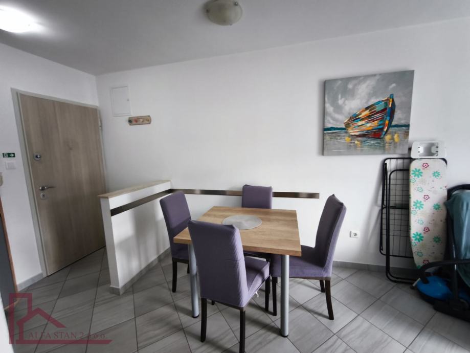Jedne sobe, dnevnog boravka s blagovaonicom, kuhinje, kupatila i balkona. Stanu pripada jedno vanjsko parkirno mjesto od 10,60 m2