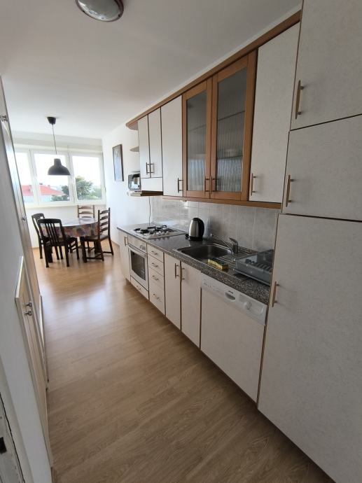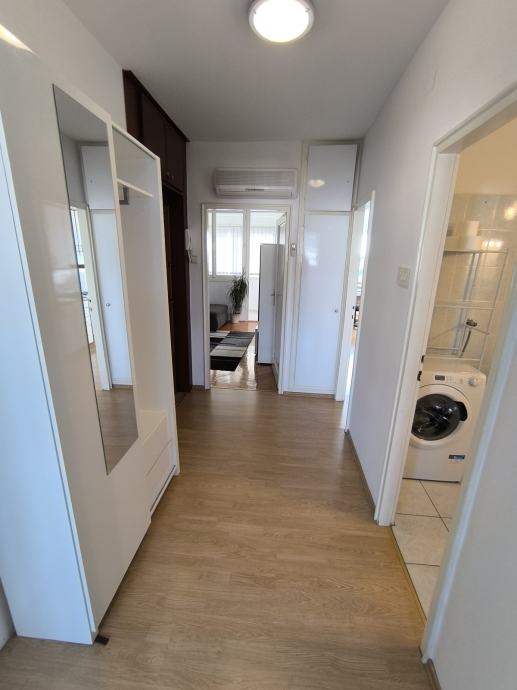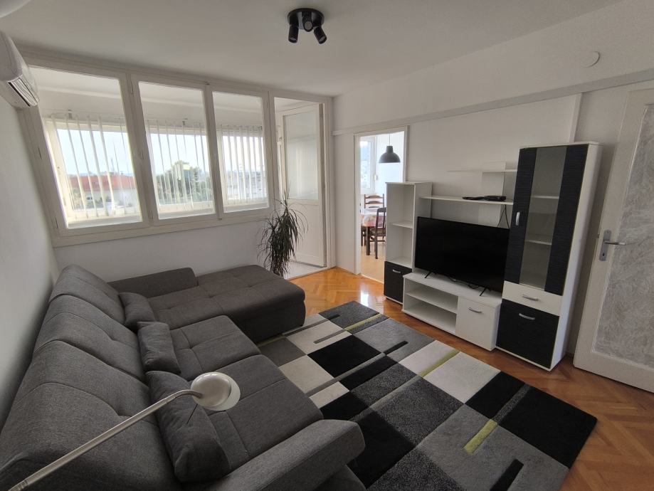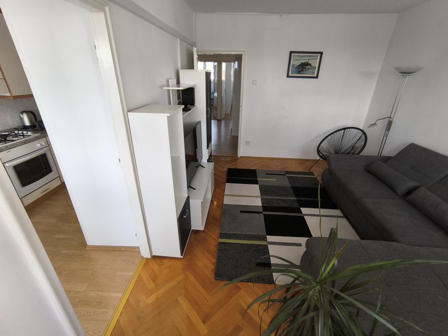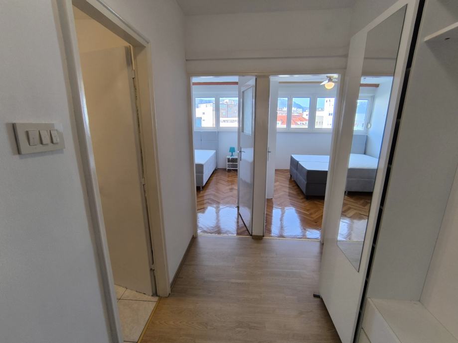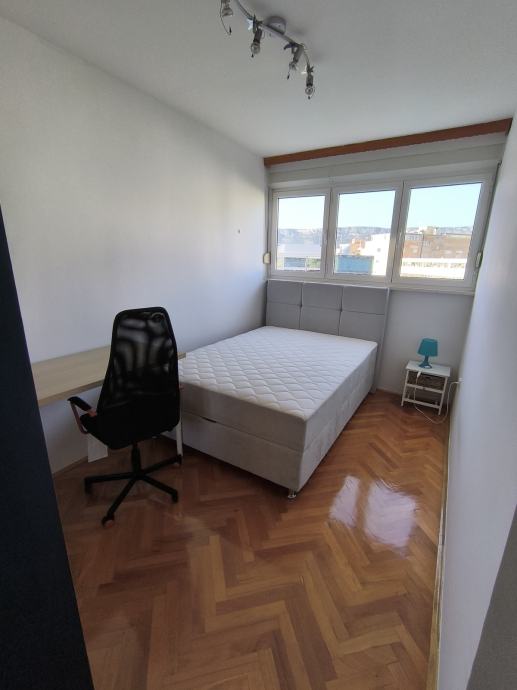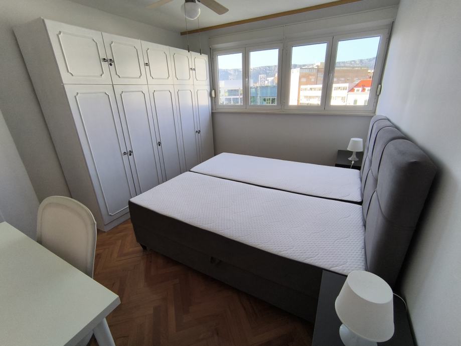 Iznajmljuje se stan na 5. katu stambene zgrade bez lifta sa dvije spavaće sobe, kupaonice, kuhinje-blagovaonice, dnevnog boravka sa lođom te pripadajuće drvarnice. Stan ima 60 m2, do 3 osobe, dnevni prostori na jugu sa odličnim pogledom na Marjan i centar grada.