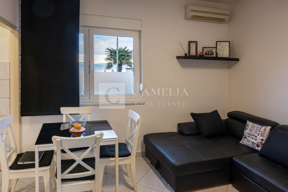 Kuhinja je potpuno opremljena svim potrebnim aparatima, a stan je opremljen klima-uređajem.