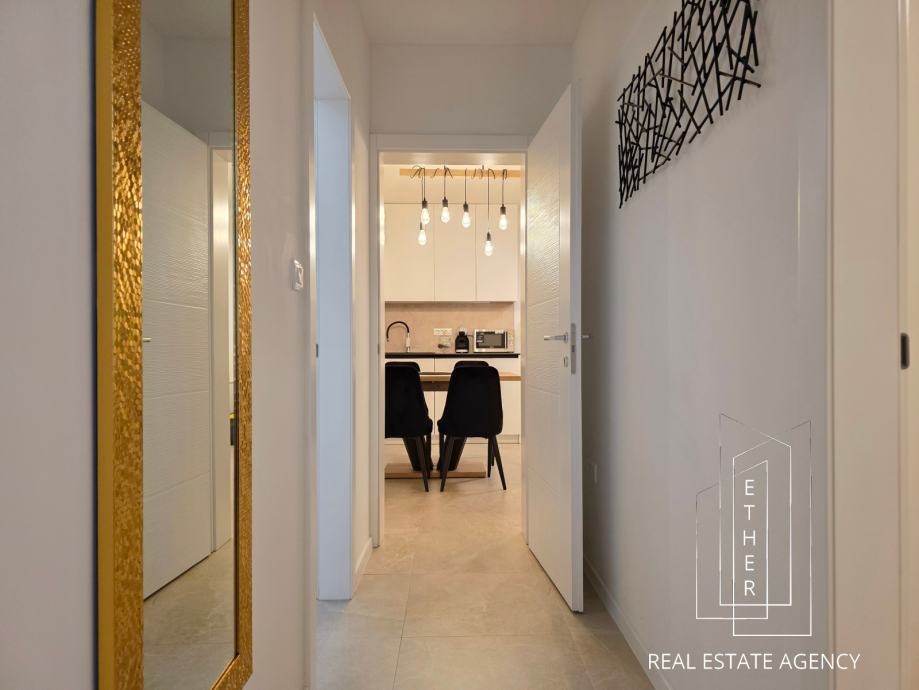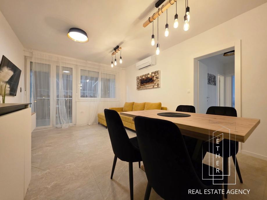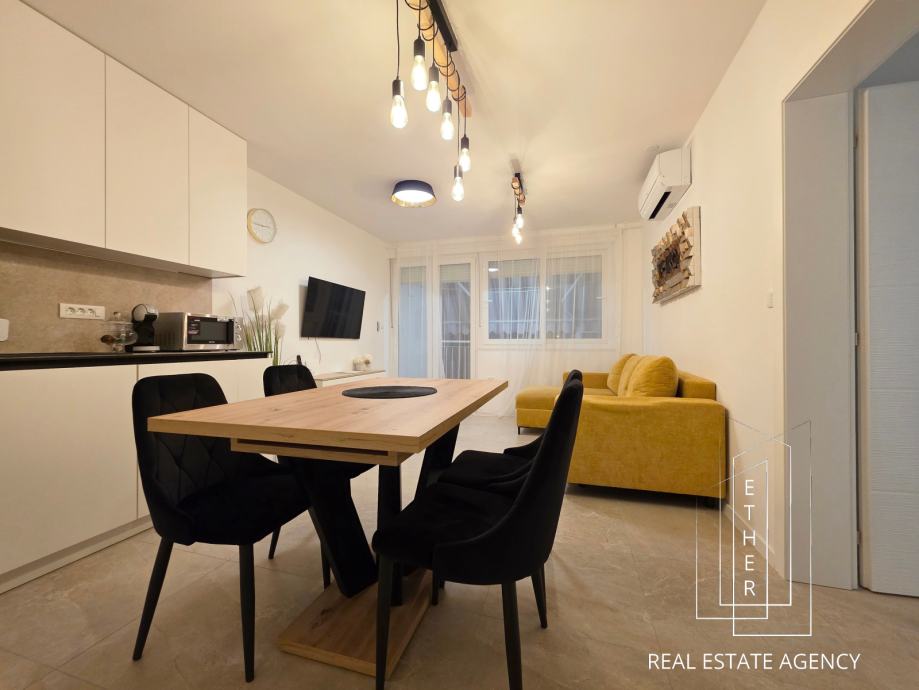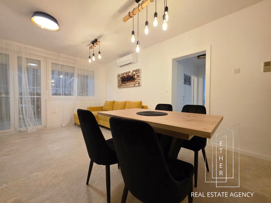 Pujanke, pleasantly furnished two bedroom apartment located on the eighth floor of a residential building. Thanks to its southern orientation, the apartment is filled with natural light throughout the day, which gives it a special feeling of warmth and airiness.