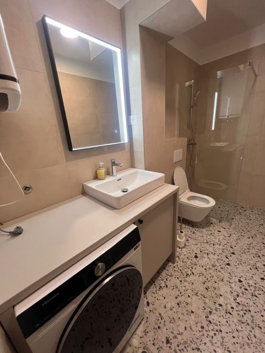 Glavna kupaonica – Walk-in tuš, perilica rublja 10,5 kg, Ariston bojler 80 L.