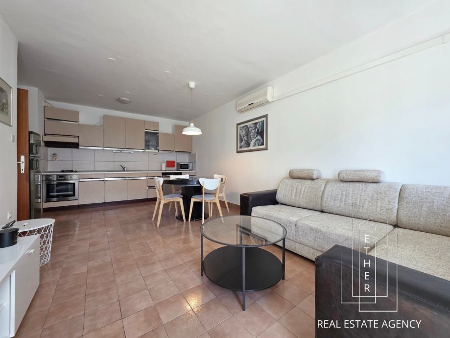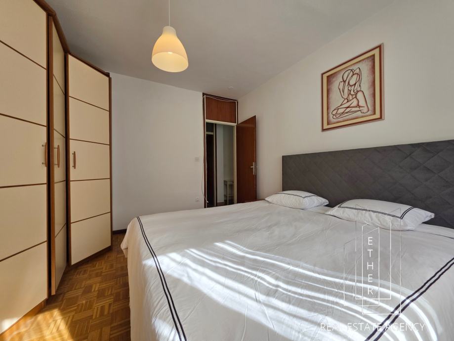 Pujanke, spacious and functional two bedroom apartment total area of 68,00 m², located on the fifth floor of a neat residential building with two elevators. The apartment is south-facing, which provides it with plenty of natural light throughout the day and a pleasant and warm atmosphere. The space is air-conditioned, which further contributes to the comfort of living during all seasons.