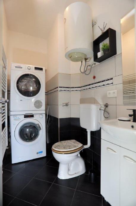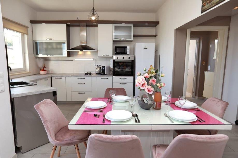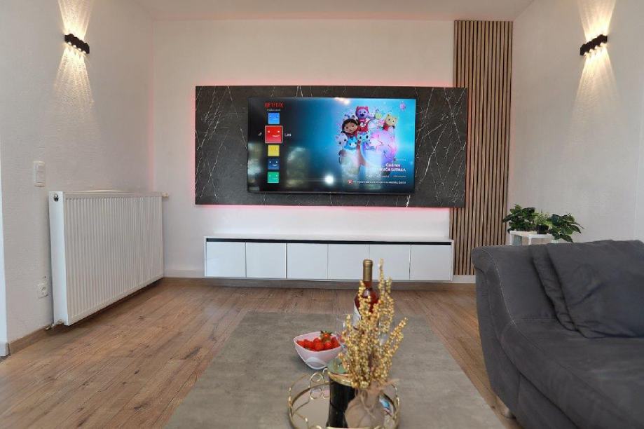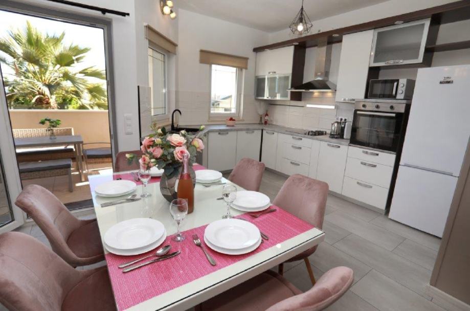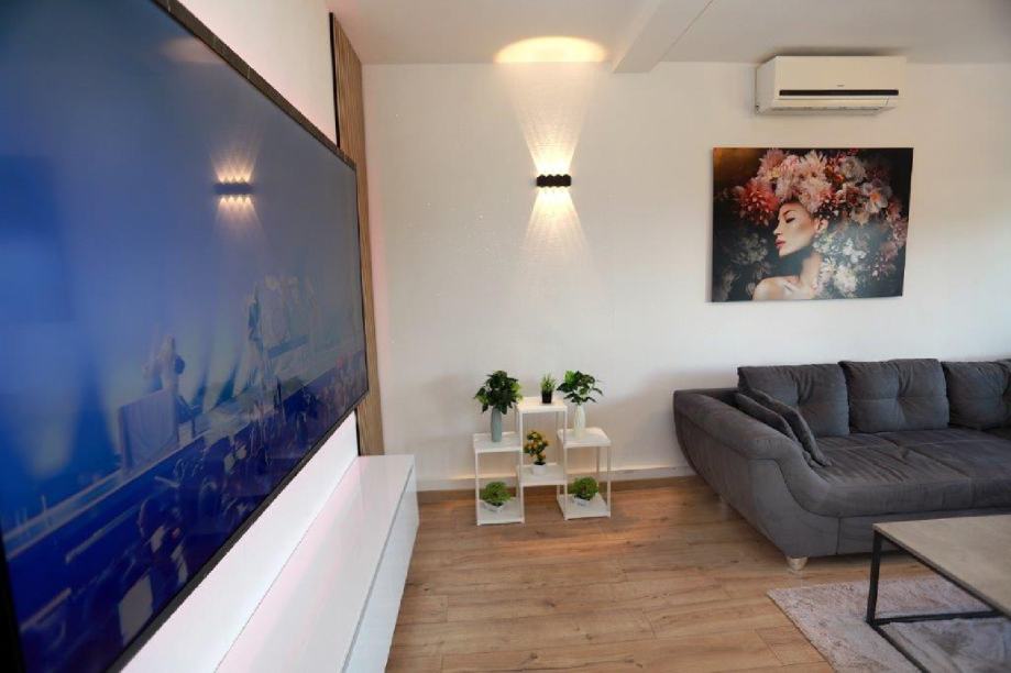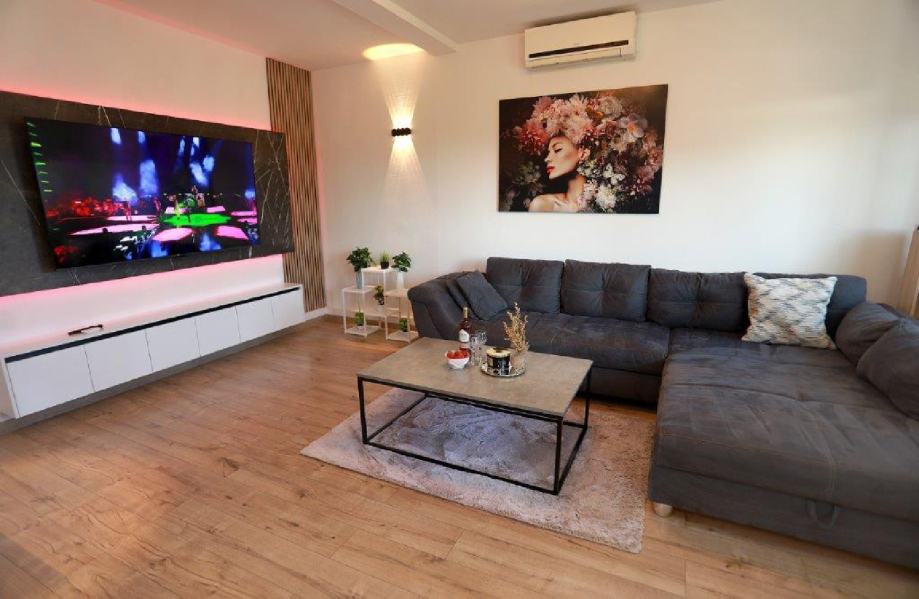 Iznajmljujem potpuno novouređeni prostrani apartman u Kaštel Lukšiću,površine 120 m2,parking,2 kupaonice(perilica i sušilica rublja),dvije sobe,kuhinjom(perilica posuđa),dnevnom sobom i balkonom