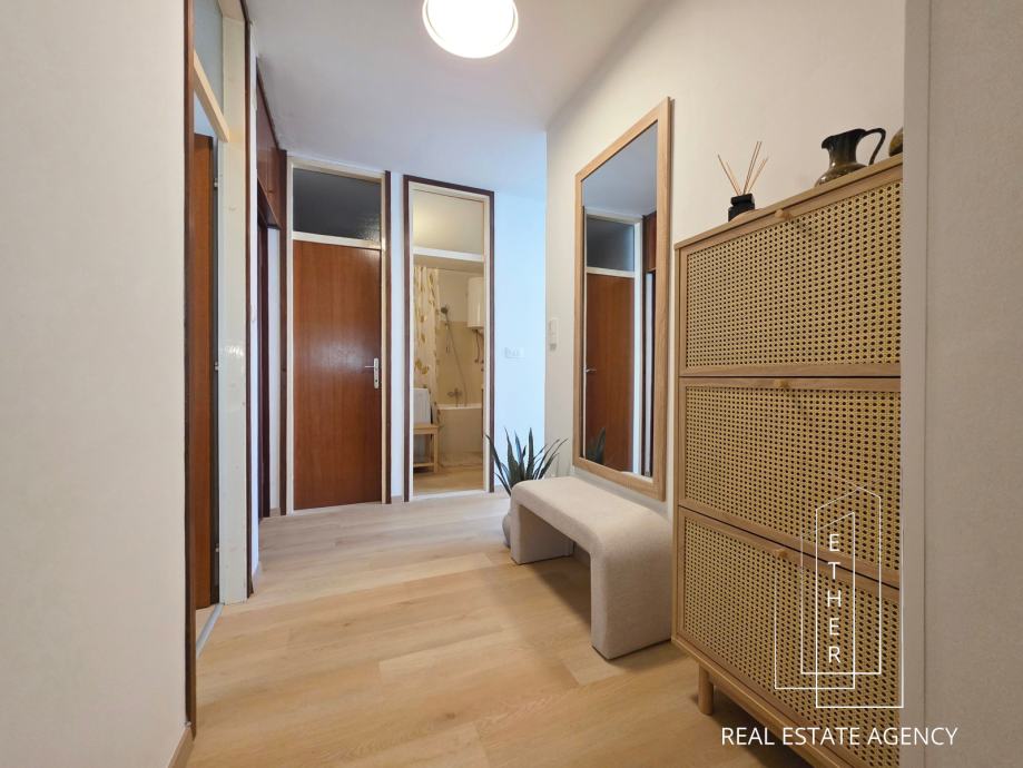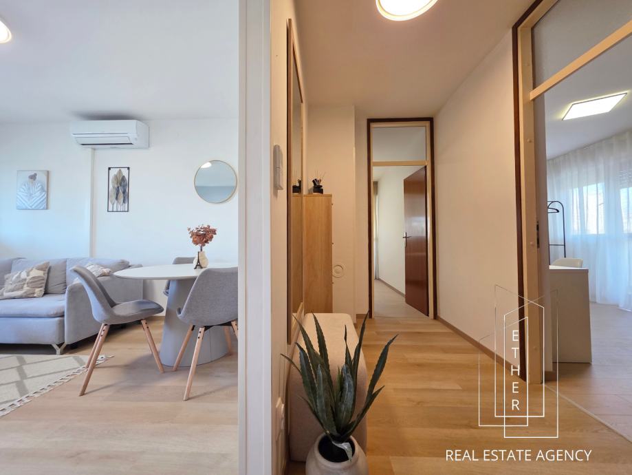 Raspored stana je praktičan i prilagođen ugodnom svakodnevnom životu. Prostor je svijetao, prozračan i funkcionalno organiziran, što ga čini izvrsnim izborom za obitelji, parove, ali i studente. Lokacija nudi blizinu svih potrebnih sadržaja – trgovina, škole, vrtića, fakulteta, javnog prijevoza i drugih usluga – čime je osigurana maksimalna praktičnost i kvaliteta života.