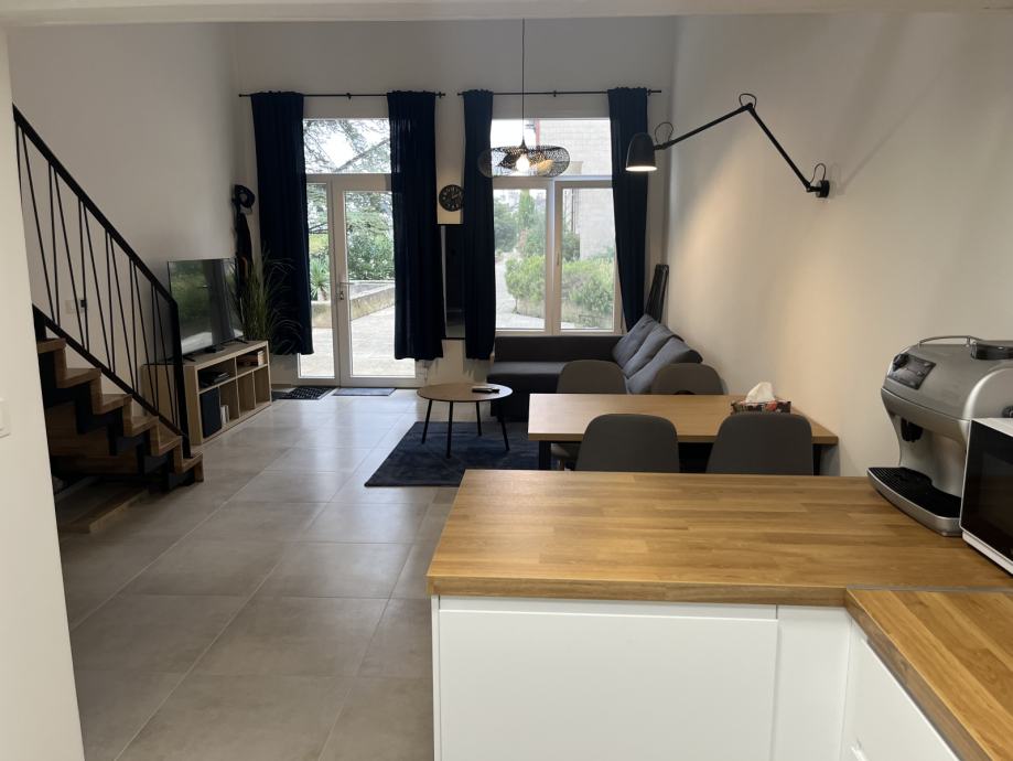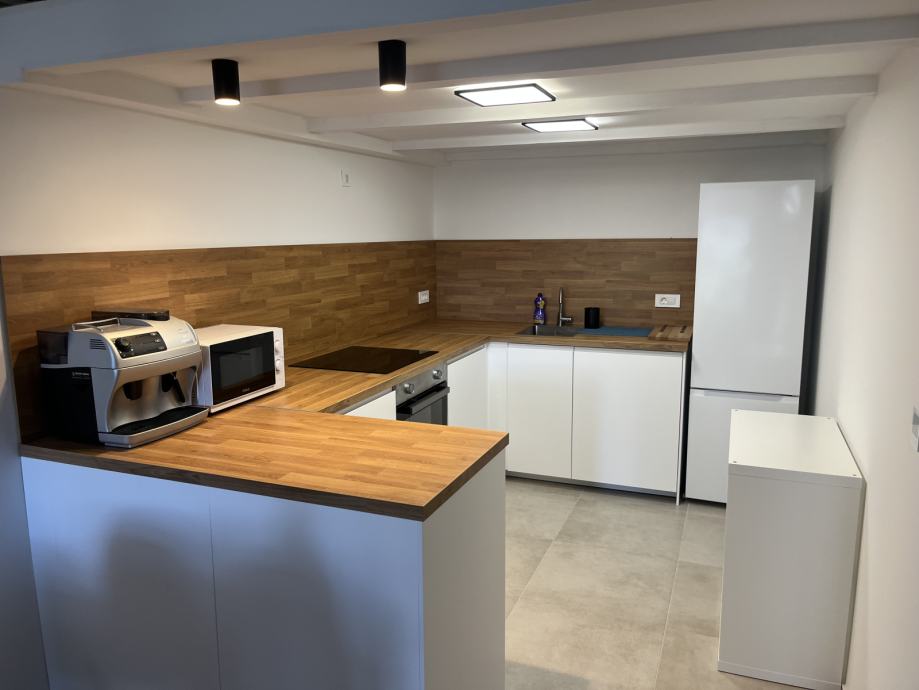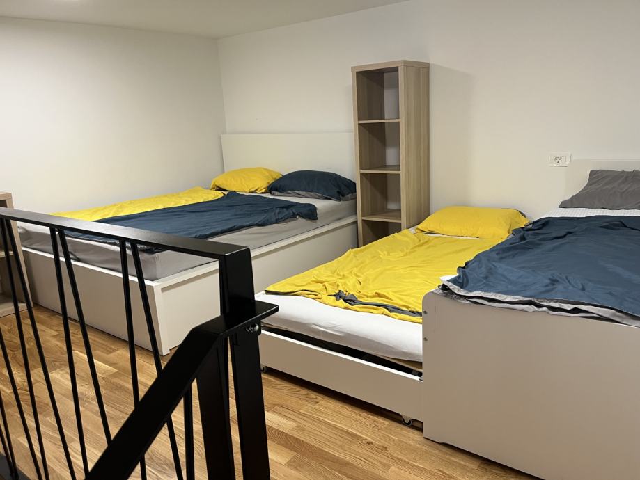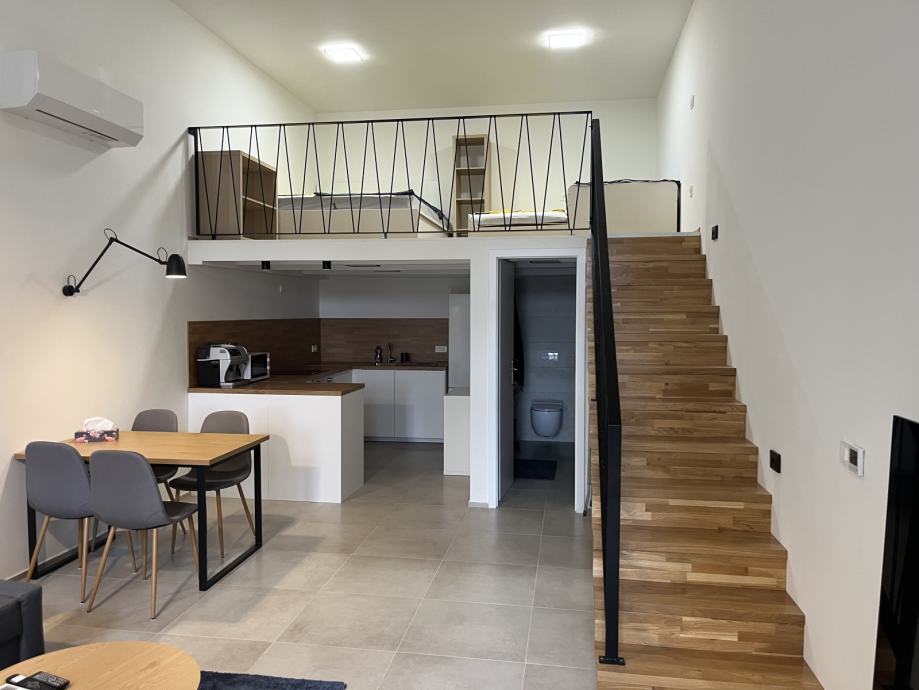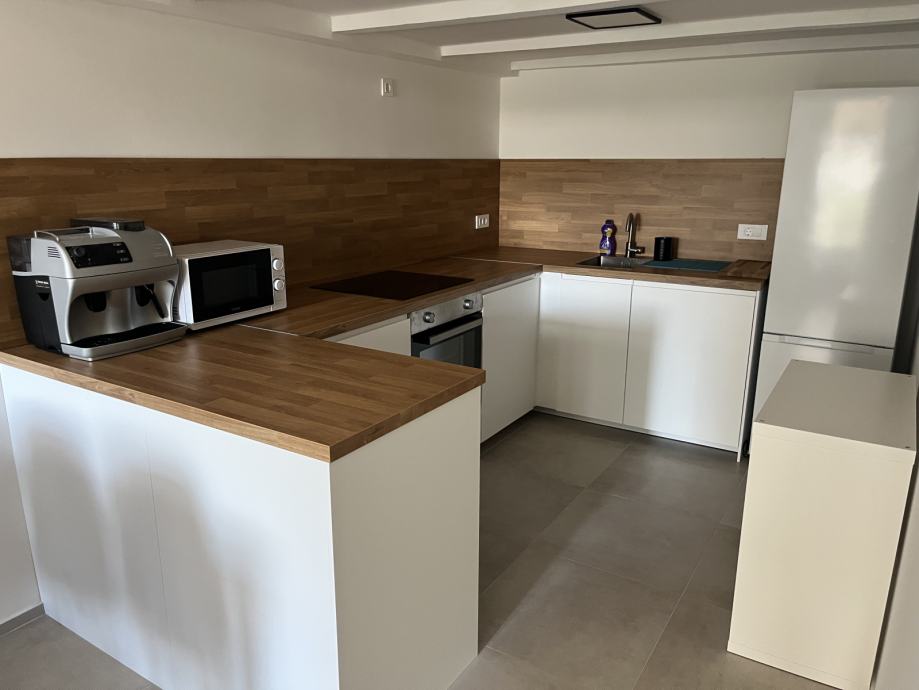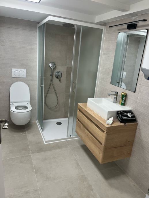 Stan je upravo novo renoviran (sve instalacije, klima 5kW, električno podno grijanje + radijator, nova kuhinja, kreveti, madraci, ogradbeni ormar ispod stepenica, apsolutno svi novi uređaji). Nakon renovacije nitko još nije koristio.