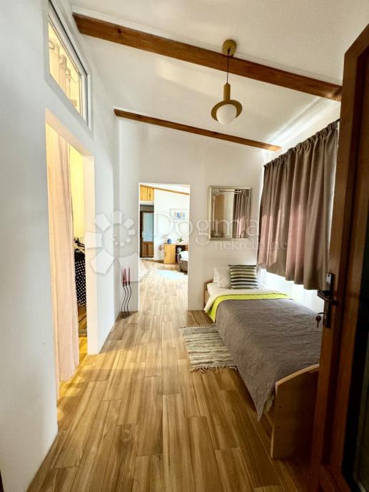 Prostire se na površini od 90 m2, koja uključuje modernu kuhinju s blagovaonicom i dnevnim boravkom, stvarajući otvoren i svijetao prostor za zajednička druženja i opuštanje. Dvije udobne spavaće sobe pružaju dovoljno prostora za odmor, dok je kupaonica opremljena svim potrebnim sadržajima.