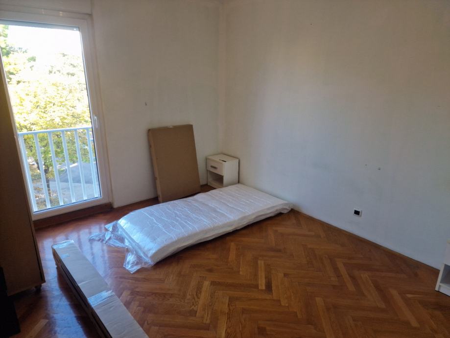 Iznajmljuje se stan ulica Mazuranicevo setaliste 800 e plus rezije. (mogucnost i za 4-6 radnika 250e po osobi ) namjesten (ostali namjestaj po potrebi) na cijelu godinu, godisnja obnova ugovora, jedna najamnina pologa. Treci kat, tri sobe plus blagavaona i kuhinja,kupatilo, wc, balkon, klima, pec na drva, perilica sudja, perilica robe. Dostupno od 1.10.2025