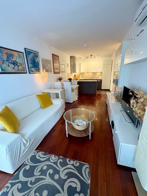 Stan se sastoji od ulaznog hodnika, 2 spavaće sobe, kupaonice, kuhinje povezane s dnevnim boravkom s izlazom na balkon. U tijeku je izrada walk in garderobe po mjeri.