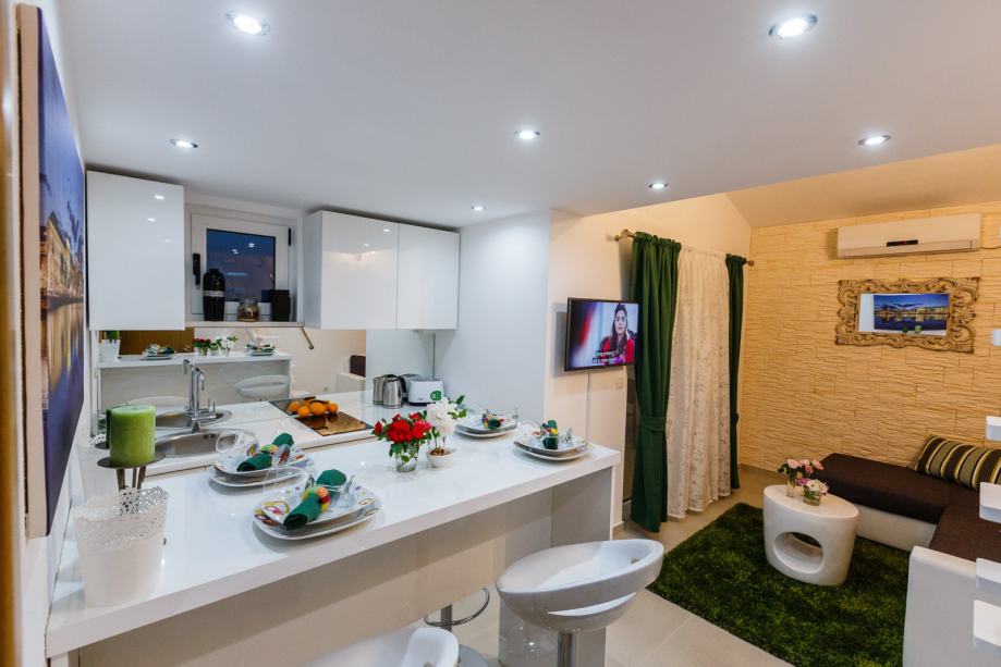 Dugoročno! Stan se sastoji od kupaonice, hodnika, spavace sobe,balkon i sobe, balkon iz dnevnog boravka, galerije gdje je bravni krevet kuhinje i trepezarije.parking mjesto natkriveno ispred kuce. Rezije ukljucene u cijenu. Samci i bracni parovi !