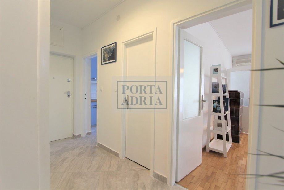 Posredujemo u najmu stana na lijepoj lokaciji, u blizini grada i plaže Firule. Stan se sastoji od dvije spavaće sobe, dnevnog boravka s kuhinjom, lođe i kupaonice. U potpunosti je opremljen, osunčan i svijetao.
