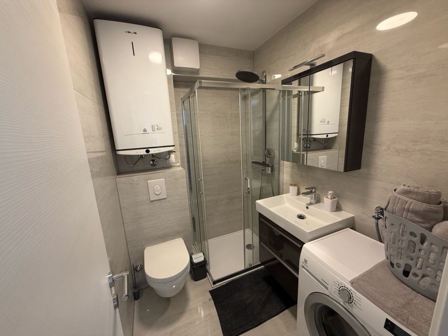 Stan je u potpunosti namješten kvalitetnim namjestajem po mjeri i aparatima visoke klase.