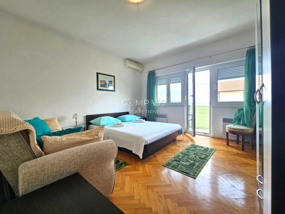 Nekretnina se sastoji od ukupno četiri sobe – tri spavaće i jedna dnevna – a svaka soba ima vlastiti balkon s pogledom na more. Tu su i kuhinja s blagovaonicom i loggiom, dvije kupaonice s WC-om, dodatni odvojeni WC te prostrani hodnik.