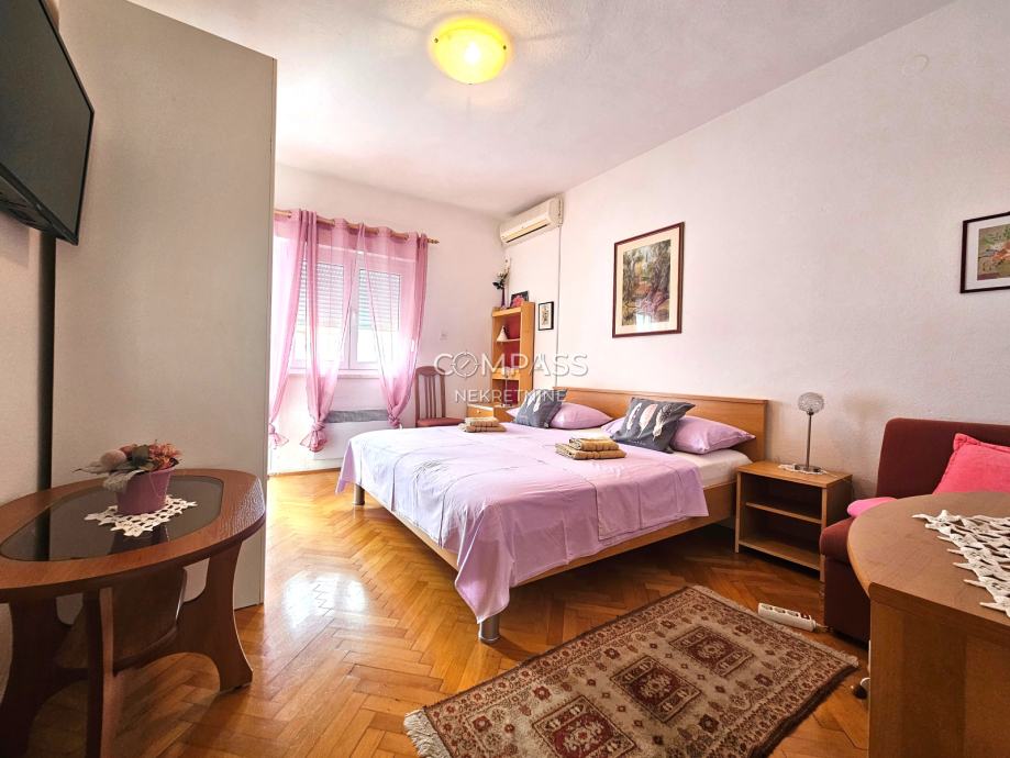 Vi formidler langtidsleie av en romslig og fullt utstyrt leilighet i Seget Donji, kun 50 meter fra sjøen. Leiligheten ligger i første etasje i en enebolig, har et areal på 110 m², og er tilgjengelig fra 1. oktober 2025. Månedlig leie er 1000 EUR.
