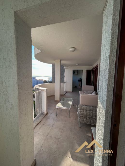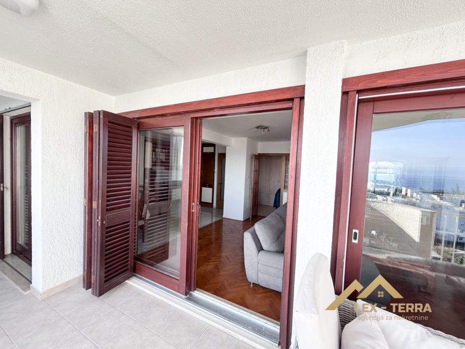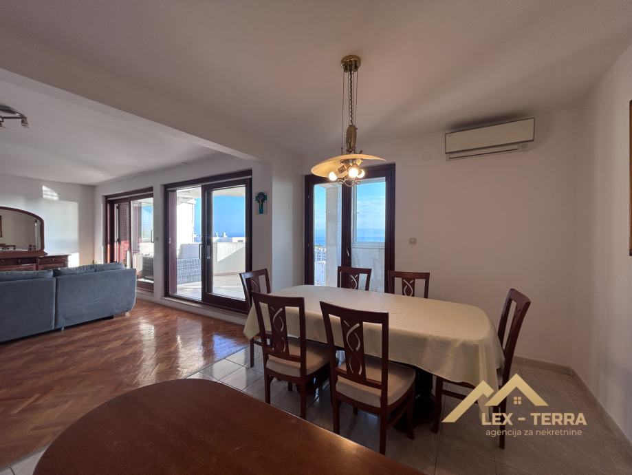 Stan se prostire na 160 m², a najveća mu je prednost velika terasa koja se proteže cijelom južnom stranom, pružajući otvoren pogled na more. Osim toga, ima tri lođe, što omogućava obilje svjetla i prozračnost.