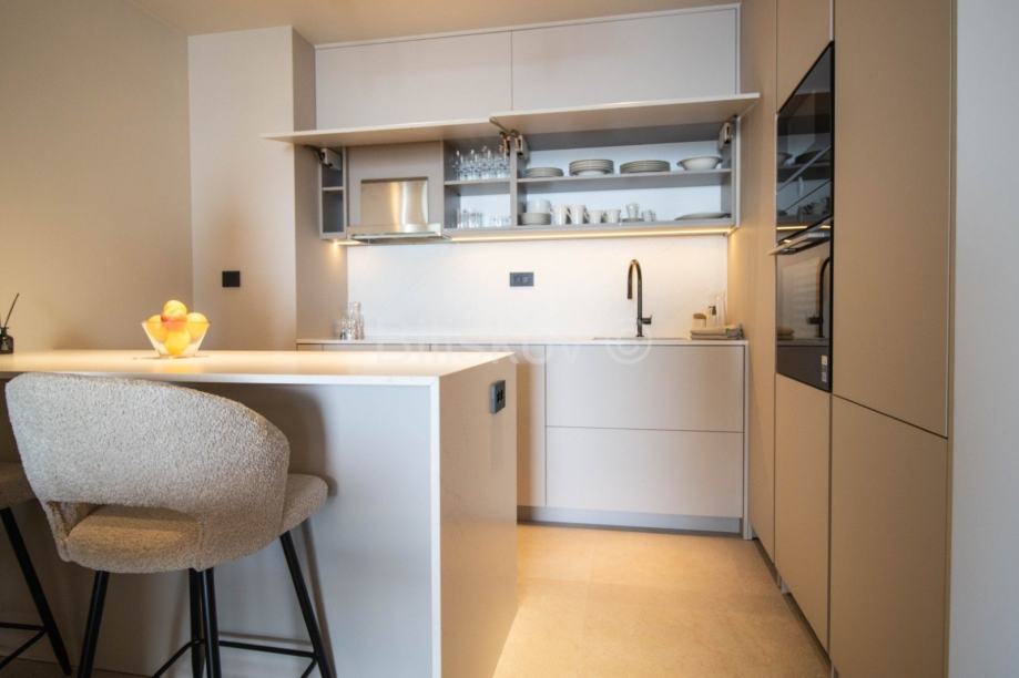 Klimatiziran je Daikin dizalicom topline sve prostorije, postavljeno je podno grijanje, kompletno je opremljen i svi materijali i uređaji koji su u stanu su kvalitete najvišeg nivoa.