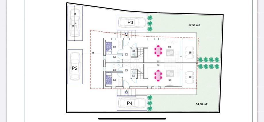U prizemlju će se nalaziti ulazni dio, spavaća soba, kupaonica, hodnik, kuh. s blag. te dnevnim boravkom te terasom. Dnevni boravak će imati 5 metarsku staklenu stijenu.