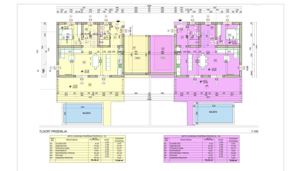 U ponudi je duplex s dvije stambene jedinice ( S1 I S2 ), pri čemu se svaka kuća prodaje zasebno.