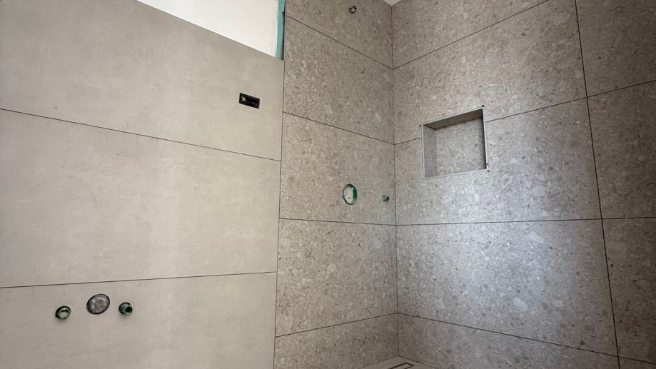 SANITARIJE U KUPAONICI: WALK IN TUŠ, ELEKTRIČNI BOJLER, WC ŠKOLJKA, UMIVAONIK