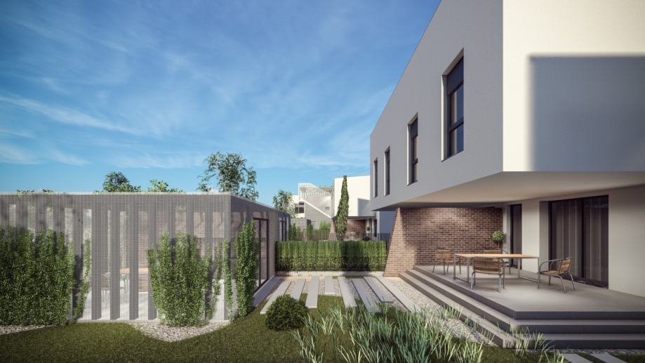 TEHNIČKI OPIS: energetski učinkoviti sustav gradnje s najmodernijim izolacionim materijalima, kuća ima sustav grijanja pomoću dizalice topline, podno grijanje u svim prostorijama, termo fasada, pvc vanjska stolarija s troslojnim izo staklima, , dva pripadajuća parkirna mjesta, vanjsko spremište uz dvorišnu terasu i ograđeni vrt kuće od oko 300 m2.