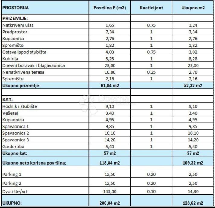 Dodatne pogodnosti, dva vanjska parkirna mjesta (12,50 m²), spremište (2,16 m²) te veliki vrt idealan za odmor, druženja ili dječju igru