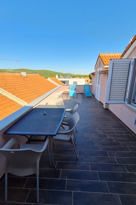 U Vodicama na traženoj i atraktivnoj lokaciji prodaje se etaža zgrade u visokom potkrovlju.