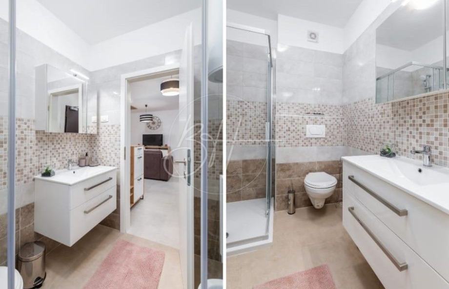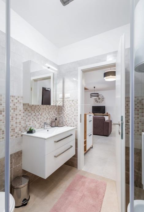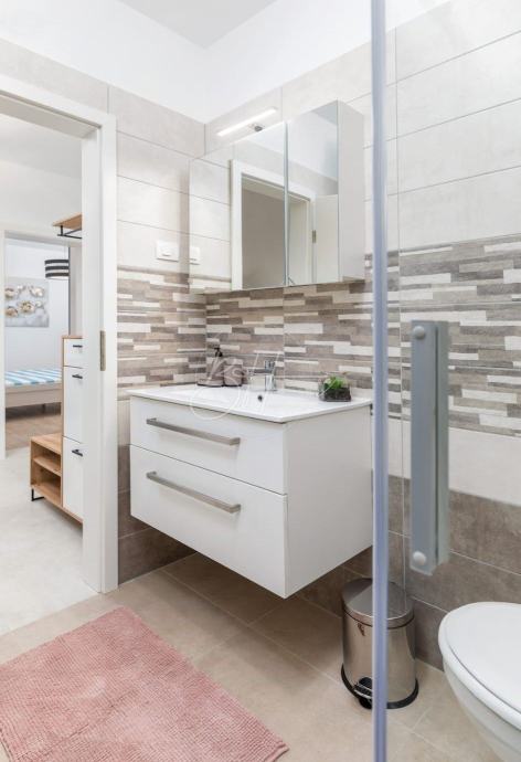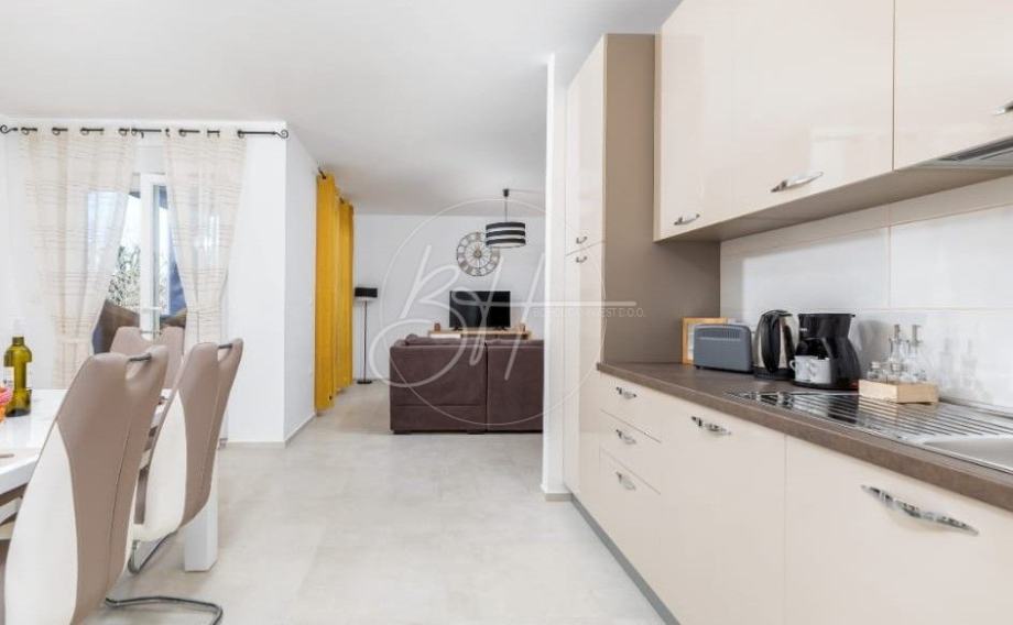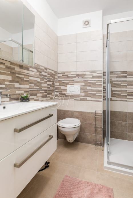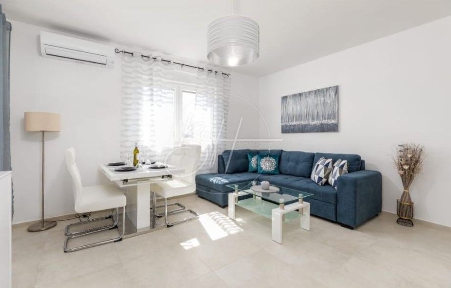 Na prodaju su dva stana na 1. katu stambene zgrade u novogradnji, ukupne površine cca 110 m², smješteni na mirnoj i atraktivnoj lokaciji, svega 1.000 m od mora i uređenih plaža. Stanovi se prodaju zajedno i predstavljaju izvrsnu priliku za obiteljsko stanovanje ili kao investicija za turistički najam.