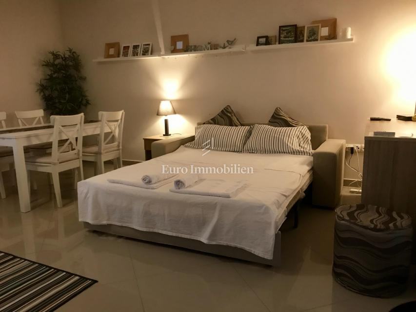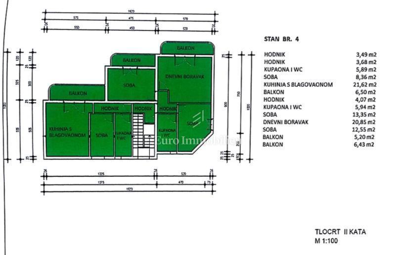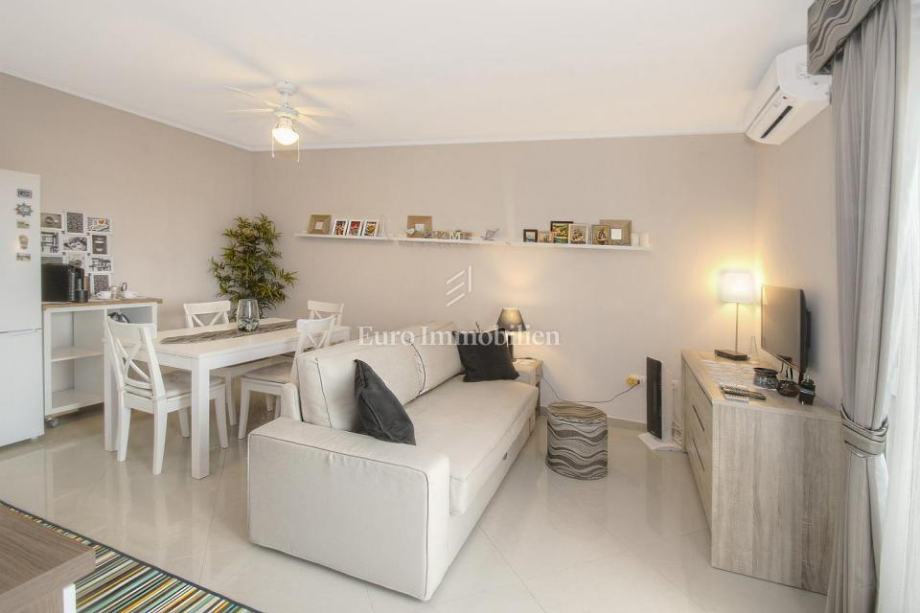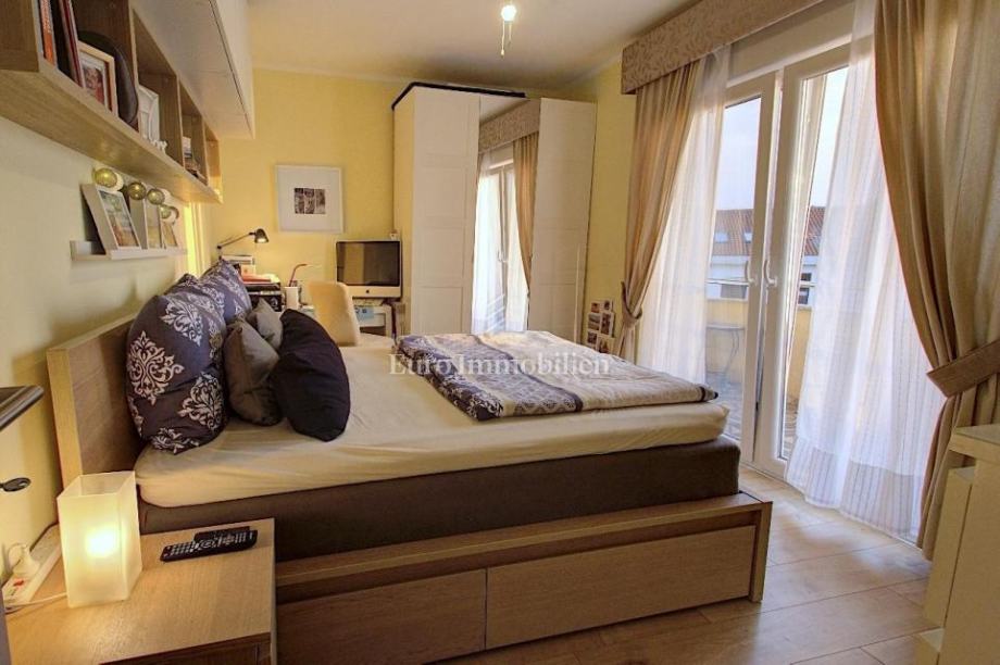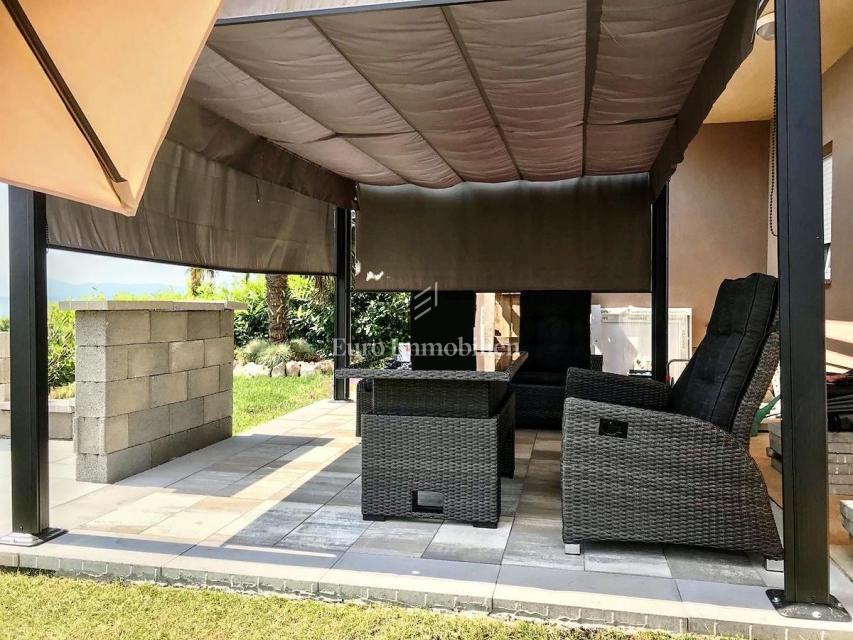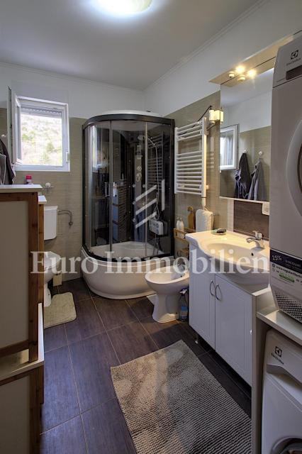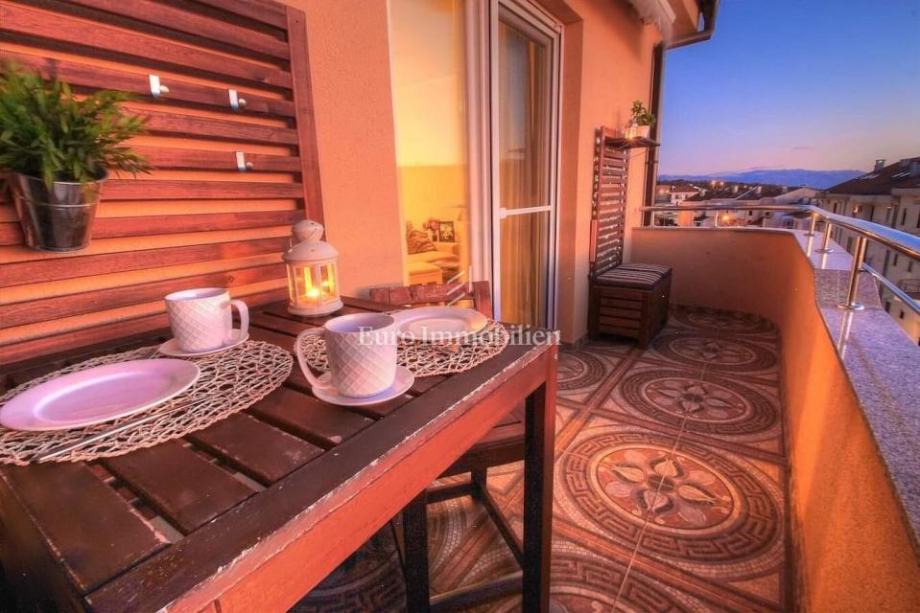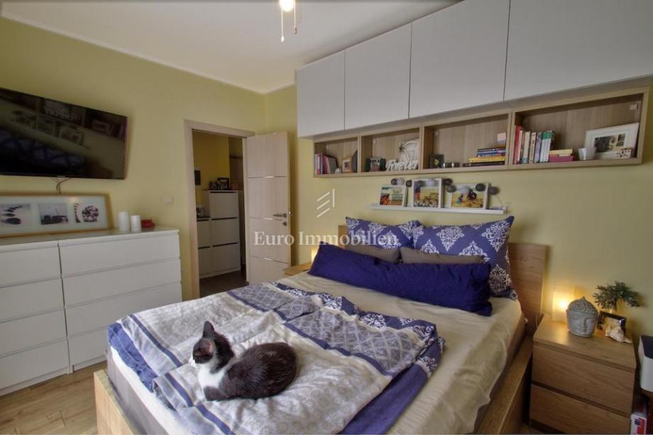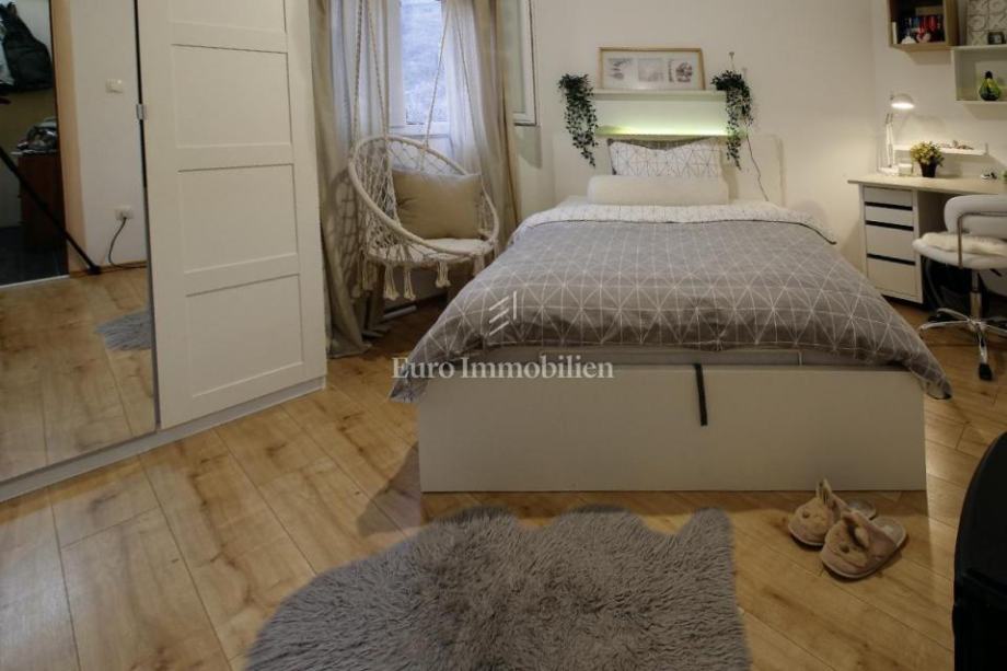 Stan ukupne površine 120 m2 se sastoji od tri spavaće sobe, dva dnevna boravka, dvije kuhinje, dvije kupaonice i tri balkona s prekrasnim pogledom na zaljev i otok Krk. Stanu pripada tavan koji se dodatno može urediti u stambeni prostor u potkrovlju, te 70 m2 okućnice. Dvorište je u završnoj fazi i sastoji se od zidanog mjesta za roštilj sa šankom, popločenog mjesta za sjedenje u sjeni pergole i mjesta za jacuzzi, te zelenog raslinja. Stanu pripada garaža i jedno parkirno mjesto ispred garaže. U naravi se sastoji od dva stana na zadnjoj etaži; od kojih se jedan vrlo uspješno iznajmljuje turistima i kategoriziran je s 4 zvjezdice, te predstavlja odličan potencijal za investiciju. Nalazi se na odličnoj, mirnoj lokaciji svega desetak minuta hoda do plaža i šetnice uz more. Idealno za veću obitelj ili osobe sa željom za dodatnu zaradu!