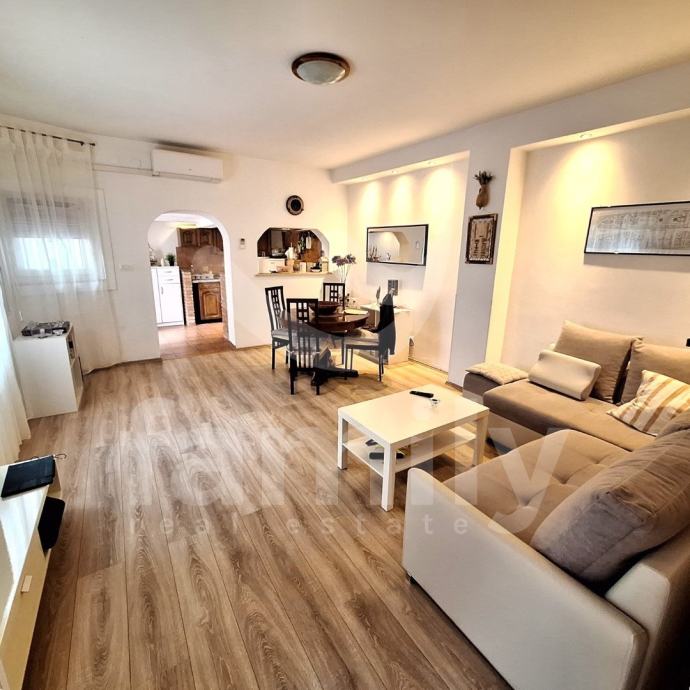 Upravo u Rovinju na samo nekoliko metara od mora nalaze se ova dva stana površine 100 m2 sa predivnom pomno održavanom okućnicom površine 90 m2. Stanovi su podijeljeni po etažama, prizemlje nam se sastoji od novo uređenog jednosobnog stana sa jednom spavaćom sobom, kupatilom, dnevnog boravka sa prostorom za ručanje i kuhinjskog prostora, te dijela okućnice na korištenje, dok nam se na prvom katu nalazi također jedan stan sa jednom spavaćom sobom samo nešto veće stambene površine, otvorenijeg dnevnog boravka, prostranog kupatila i kuhinje sa izlazom na drugi dio okućnice koji je također predviđen za uživanje u opuštajućim trenutcima dana.