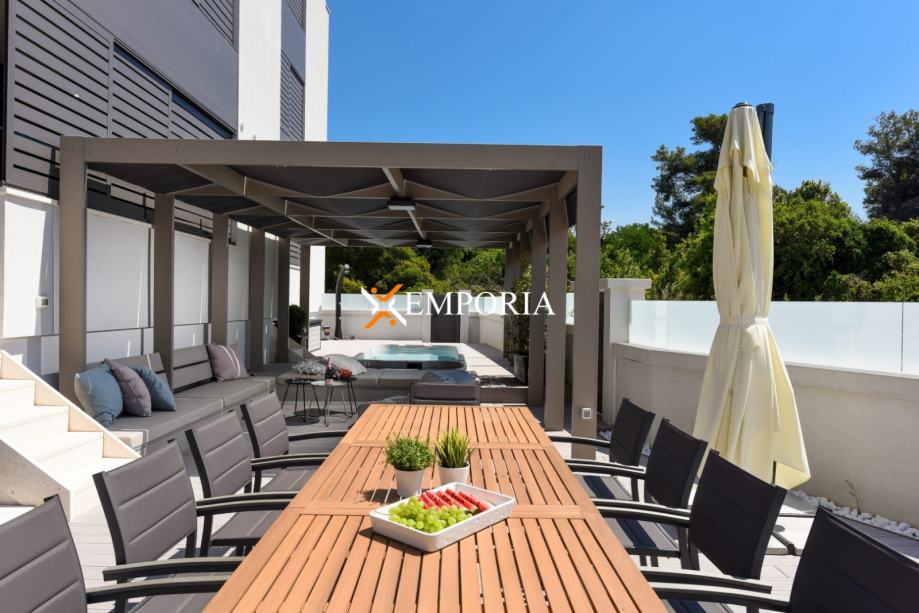 Objekt je izgrađen 2020. godine i ima energetski certifikat A+.Lokacija nekretnineOvaj dio grada, Borik, poznat je po pješčanim i šljunčanim plažama koje su uređene i opremljene dodatnim sadržajima za zabavu i rekreaciju, a u naselju se nalaze i sportski tereni. Borik je odredište koje zbog lijepih i lako dostupnih kupališta preporučujemo obiteljima s djecom, a raznovrsnost sportskih sadržaja u mjestu i okolici te blizina centra Zadra, Poluotoka, čine ga zanimljivim mladima i ljubiteljima aktivnog odmora. Odlično je povezan dio grada linijama gradskog prijevoza, ima odlične restorane, kafiće, noćne klubove i parkove za djecu. Ostale informacijeUkoliko ste ovu nekretninu vidjeli negdje drugdje po nižoj cijeni, ista cijena vrijedi i kod nas!https://www.emporia-nekretnine.com/property/stan-f1314-zadar-borik/____________________Zum Verkauf stehen zwei modern eingerichtete Wohnungen im Erdgeschoss eines hochwertigen Gebäudes im attraktiven Stadtteil Borik in Zadar, nur 470 m vom Meer und 2,2 km vom Stadtzentrum entfernt. Die Wohnungen können gemeinsam als eine Einheit erworben werden, auf Wunsch des Käufers besteht jedoch auch die Möglichkeit, jede Wohnung einzeln zu kaufen. Gemeinsam bieten sie einen schönen Garten von 172,83 m² sowie einen Pool und einen Jacuzzi, die durch eine Pergola überdacht sind, wodurch ein angenehmer Bereich zum Entspannen und für den Aufenthalt im Freien entsteht.