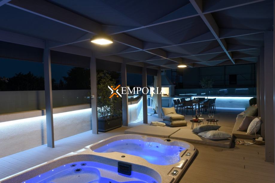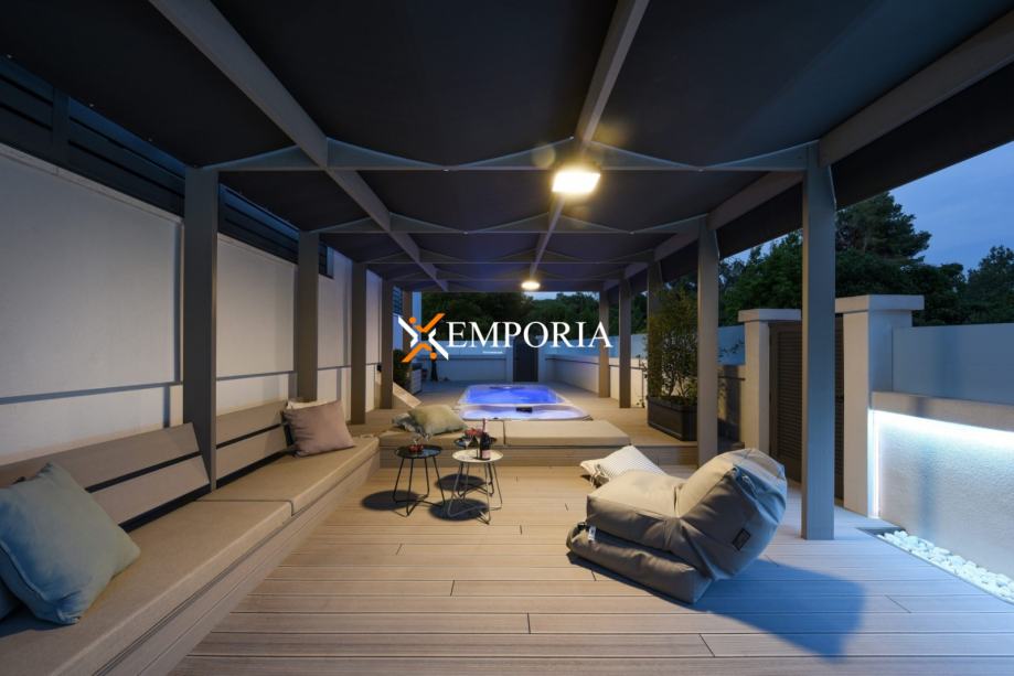Zajednički nude prekrasan vrt površine 172,83 m² te bazen i jacuzzi natkriven pergolom, stvarajući ugodan prostor za opuštanje i boravak na otvorenom.