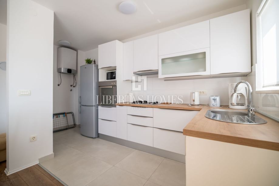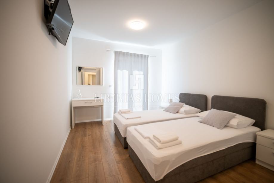 Stan je potpuno uređen, jednostavnih boja i linija te se koristi u svrhe turističkog najma.