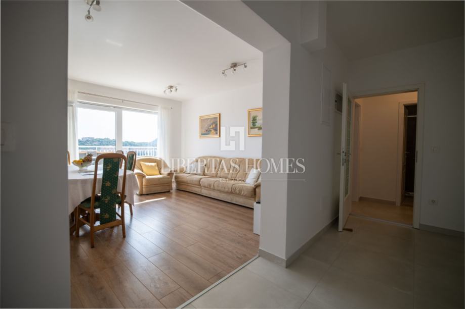 Stanovi se nalaze u kući koja se sastoji od suterena, prizemlja dva kata i potkrovlja. Trosobni stan smješten na drugoj etaži proteže se na oko 90 m2. Sastoji se od tri spavaće sobe, dvije kupaonice, prostranog dnevnog boravka s blagovaonicom i kuhinjom. Iz dnevne sobe izlazi se na veliki balkon koji je osunčan tijekom cijelog dana. S balkona se pruža prekrasan pogled na cijeli Gruški akvatorij.