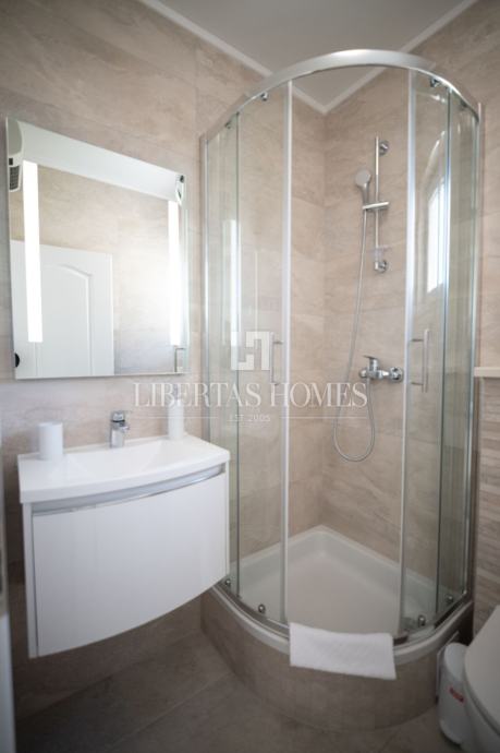 Visoko potkrovlje vlasnici su iskoristili te uredili u dodatnu jedinicu sa zasebnim ulazom. Stan je u fazi roh bau te će se sastojati od tri spavaće sobe, dnevne sobe s kuhinjom i blagovaonicom te dvije kupaonice. U stražnjem dijelu je pripadajući vrt od oko 90 m2 koji ima potencijal za izgradnju manjeg bazena.