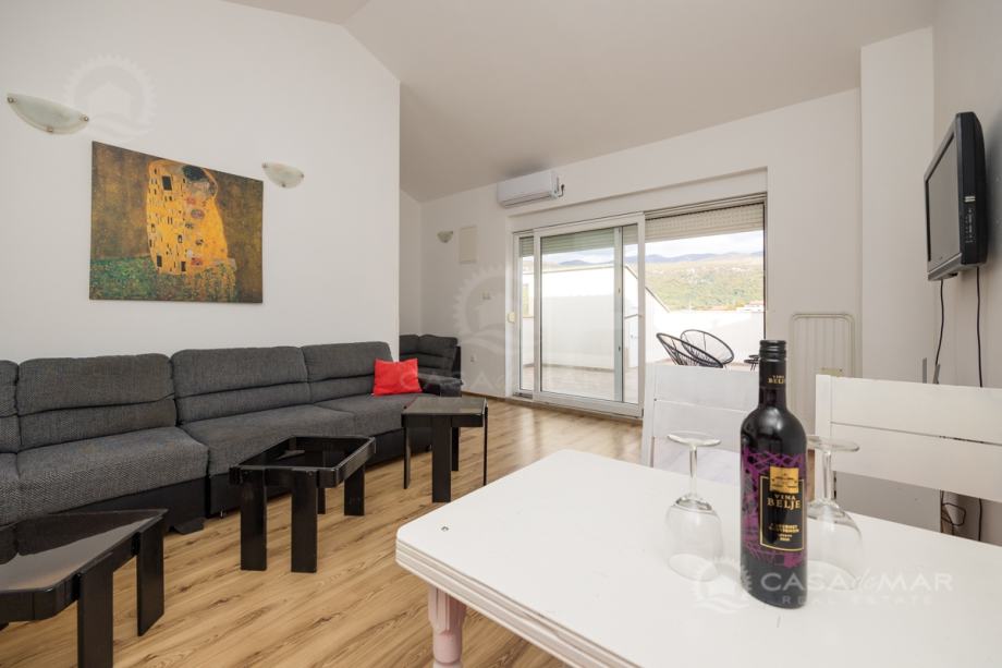 Apartman na drugom katu sa pripadajućim apartmanom u potkrovlju ukupne stambene površine od 131 m2 nalazi se u Novom Vinodolskom.