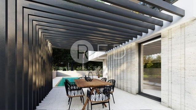 Prodaju se dvije prekrasne vile s bazenom na odličnoj lokaciji, svega 100 metara zračne udaljenosti od mora. Ove moderne kuće nalaze se na zemljištu veličine 802 m² te imaju neto korisnu površinu od 359,16 m². Svaka vila se sastoji od prizemlja i jednog kata, pružajući savršenu kombinaciju luksuza i udobnosti.