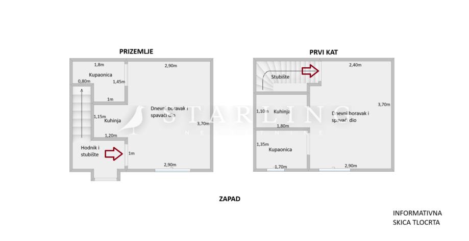 Prodaju se dvije garsonijere ukupne neto površine 40 m2 u prizemlju i prvom katu zgrade bez lifta.