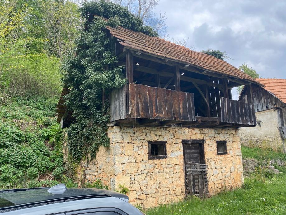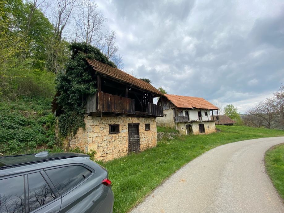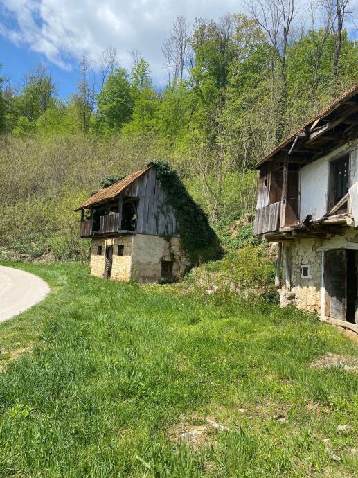 Dvije kamene kuće za adaptaciju na parceli 4000m2 u kompletu. Obje upisane; plus još jedna upisana, ali trenutno uklonjena. Na odličnoj mirnoj poziciji. Veliki potencijal za vikendicu, kuće za odmor ili seoski turizam. Moguća zamjena. 4km od izlaza Novigrad na autoputu Zagreb-Rijeka. 10min automobilom od centra Karlovca.