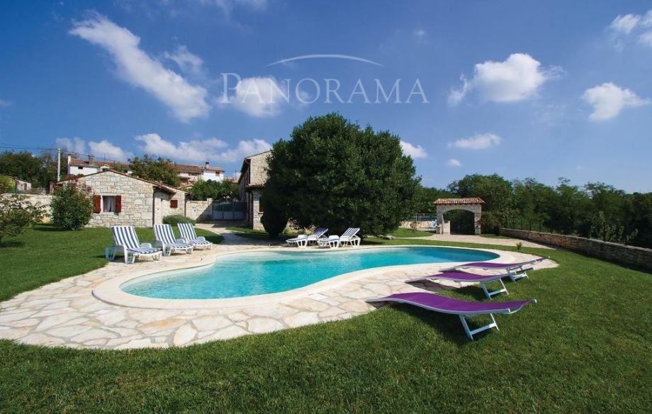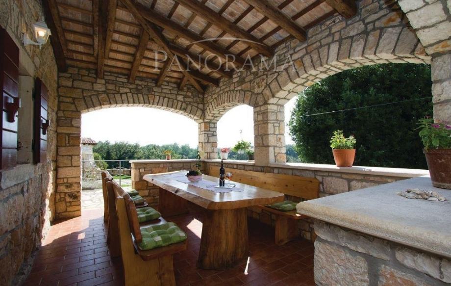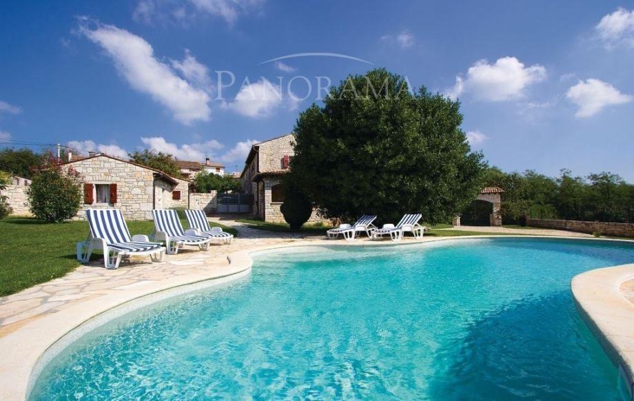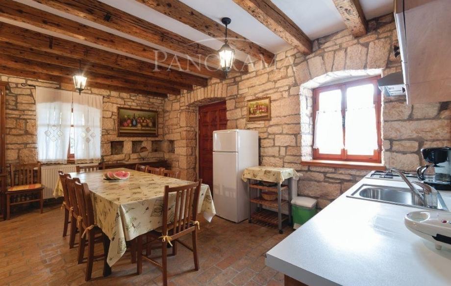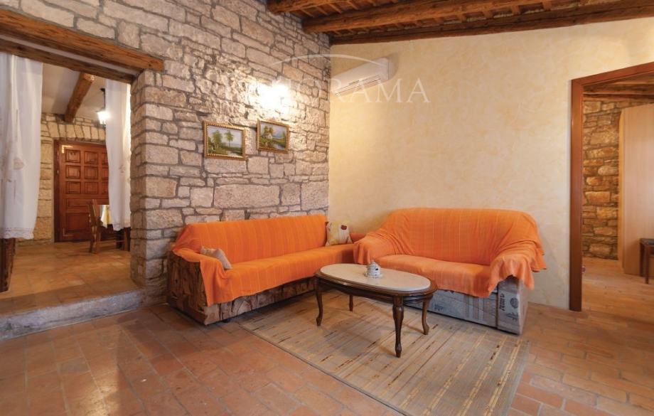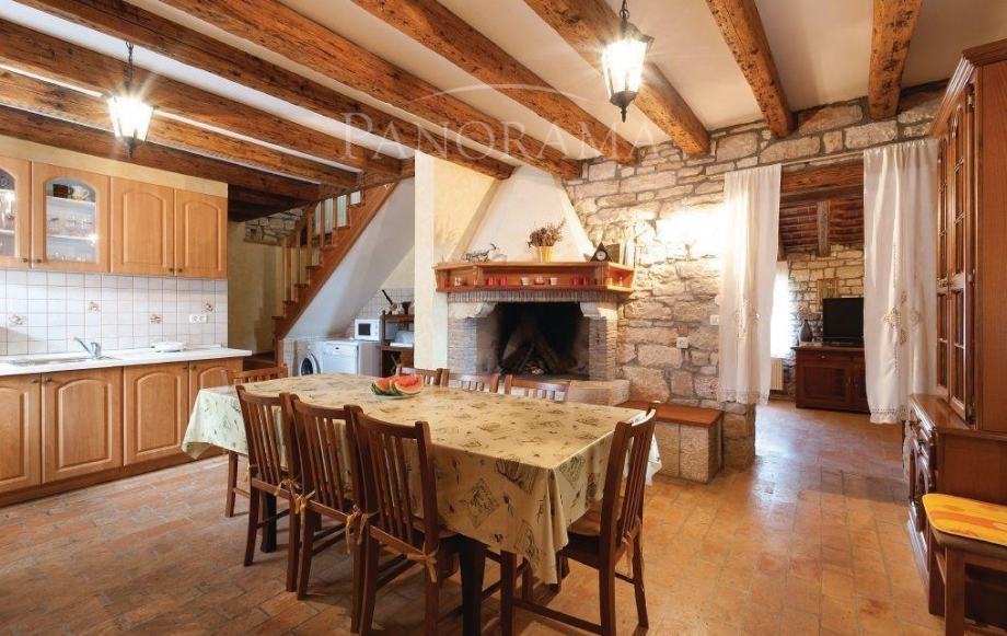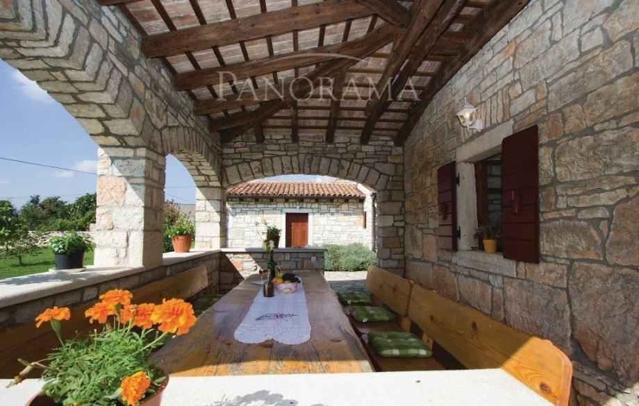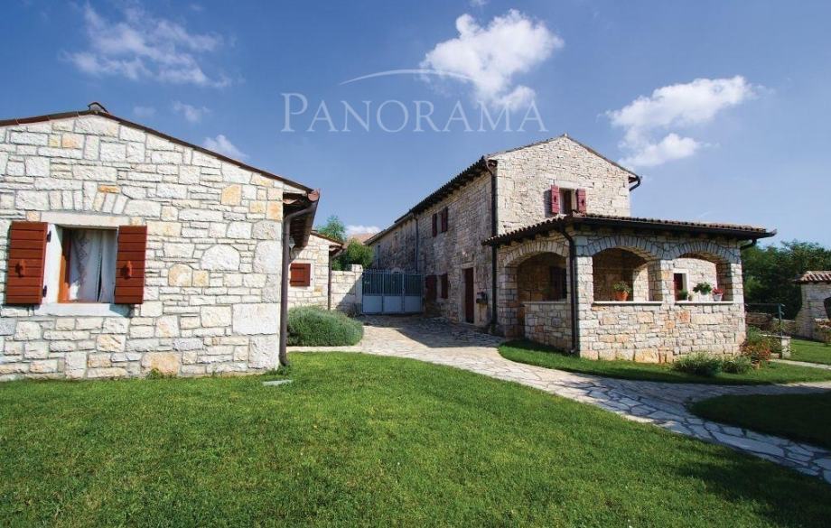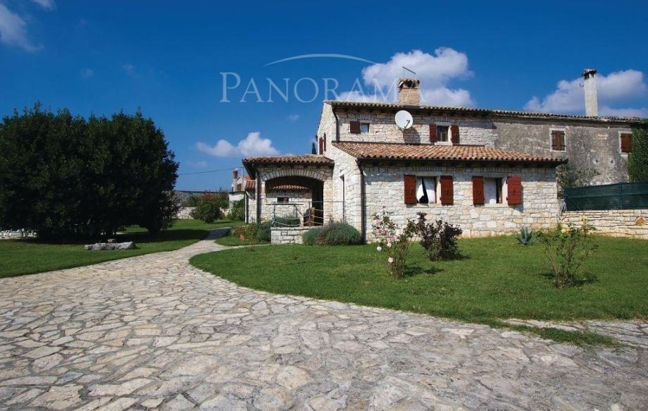 Ove prekrasne kvalitetne kamene kuće se nalaze u Kanfanaru, dražesnom mjestu udaljenom 15km od turističkog bisera Rovinja i 10 km od Limskog kanala i mora. Nalazi se na parceli od 1486m2, na proplanku na rubu mjesta i s pogledom na zelenilo. Uz veću kuću površine 140m2 koja je vezana stražnjom stranom tu je i mala zasebna kuća površine 34m2. Radi se o kamenim objektima starima više od 100 godina koji su renovirani 2006.godine u cijelosti zadržavši rustikalni izgled. Kuće imaju nove instalacije struje, vode i odvoda, centralno grijanje, klima uređaje, hidro i termo izolacije na podovima i stropovima, novu drvenu stolariju... a opet su svi zidovi ostali kameni i isfugirani, na stropovima su ostale grede i tavelice (svaka je oslikana), a na podovima su također tavelice i seljački drveni pod. U kuhinji se nalazi i ognjište, a namještaj je u cijeni.