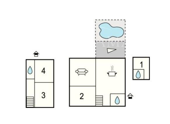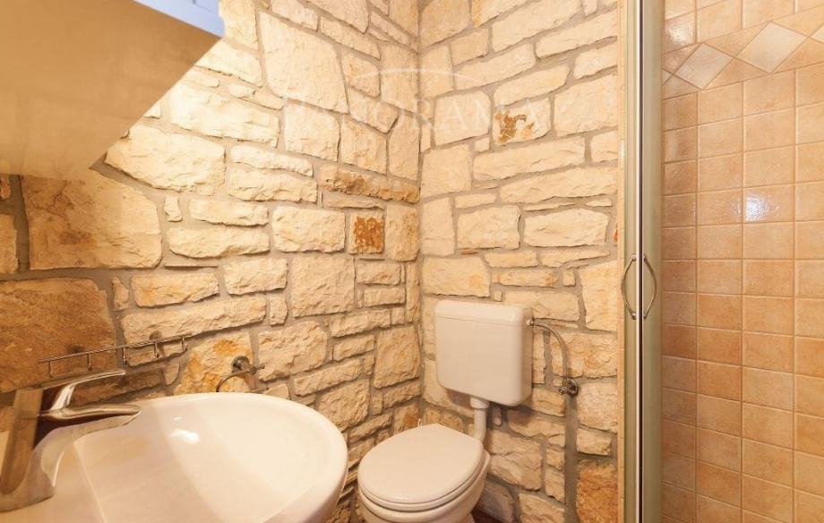 Velika kuća se sastoji od prizemlja u kojem je kuhinja s blagovaonicom, dnevni boravak, spavaća soba, kupaonica i terasa, dok su na katu 2 spavaće sobe, kupaonica i hodnik. Mali objekt je studio apartman s kupaonicom, te spremište sa zasebnim ulazom.